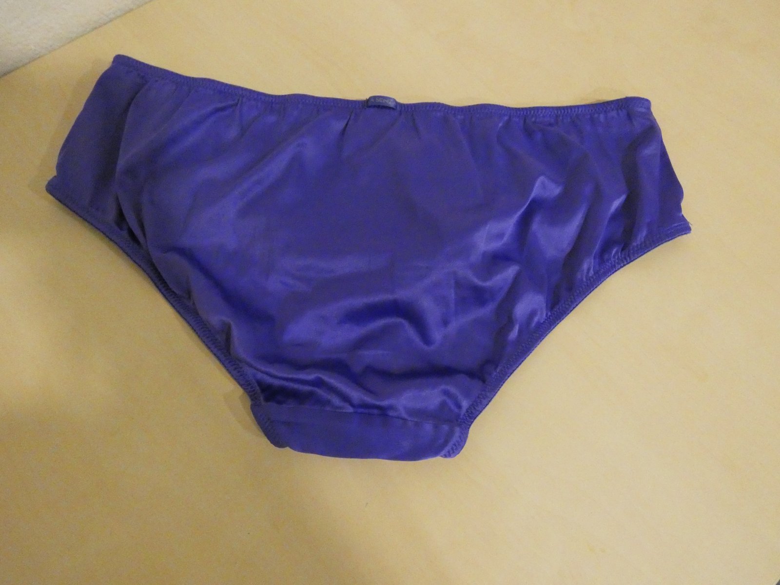 Nosené bez poškodenia. Materiál je 92% polyamid a 8% elastan. Rozmery sú šírka v páse v nenatiahnutom stave 37 cm x 2 a v natiahnutom stave 45 cm x 2, sed je 22 cm.