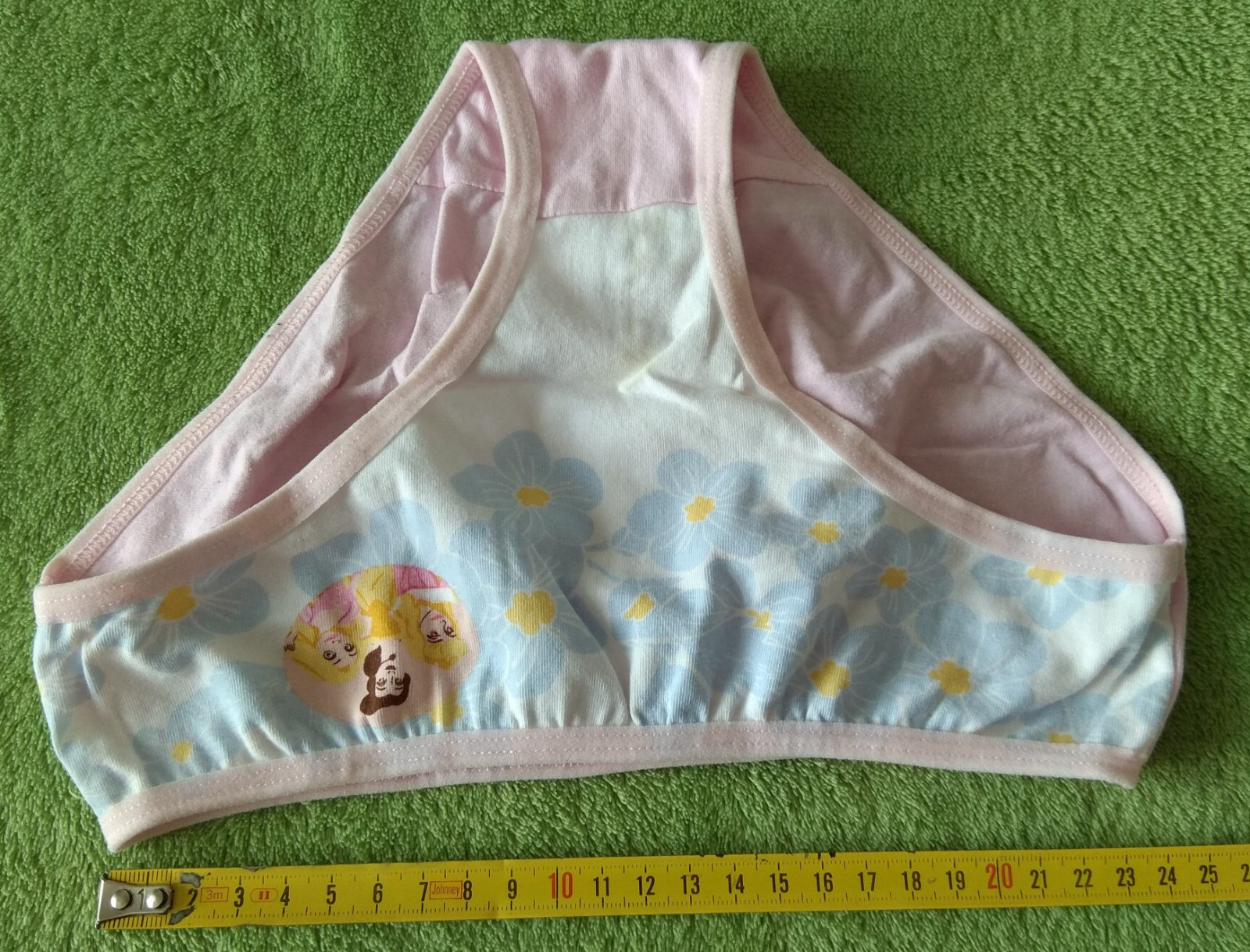 Podprsenka je ako dospelácka 🙂, má nastaviteľné ramienka a zapínanie na háčiky. Tielko je iná značka, má príjemný materiál, je bez fľakov, žmolkov a dier, len tie ružové motívy sú niekde odlepené. ...