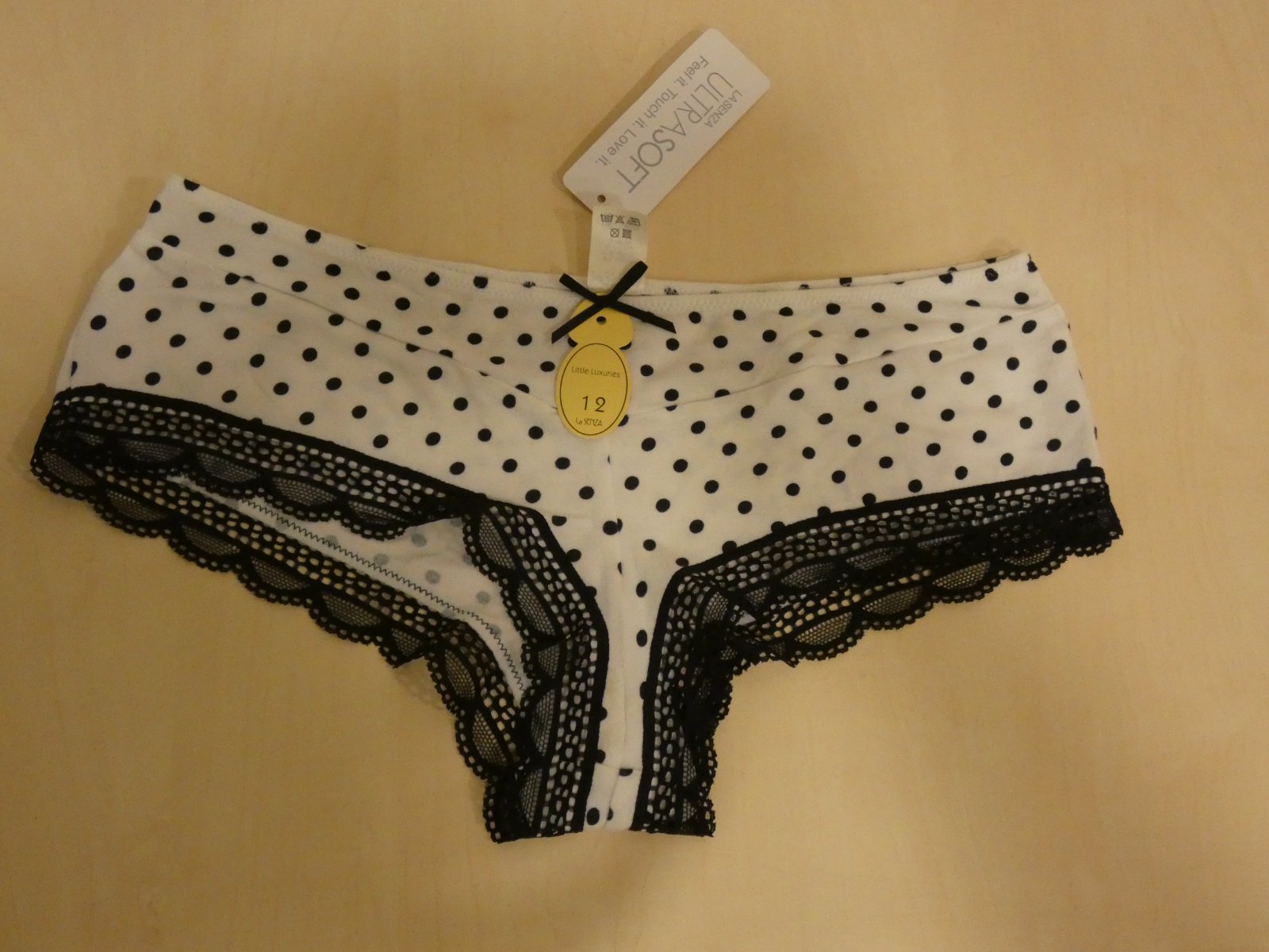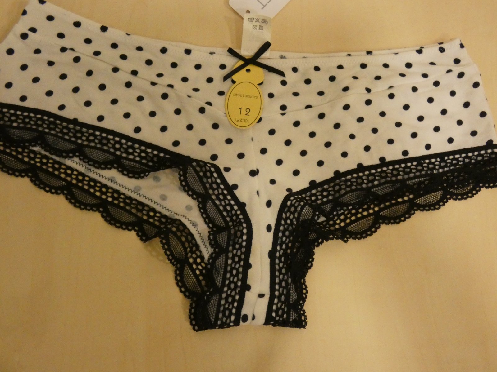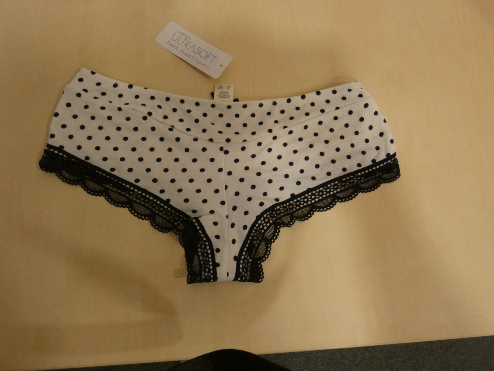 Nové ,bez poškodenia. Veľkosť je 40, materiál je 93% modal a 7% elastan. Rozmery sú v páse v nenatiahnutom stave 32cm x 2 a v natiahnutom stave 40cm x 2,sed je 19 cm.