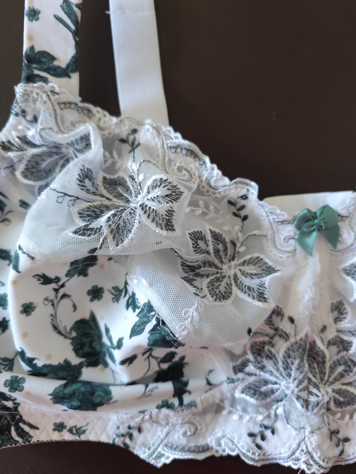 Odľahčujúce podprsenky bez kostíc s vystuženými ramienkami. béžova a biela so zelenými kvetmi. Pohodlné zapínanie na 4 háčiky, ramienka nastaviteľné. Obe sú č. 100E, na béžovej odstrihnuté visačky. Výborný stav, oblečené asi 3x. Cena 9€ je za jednu, spolu za obe 17€.