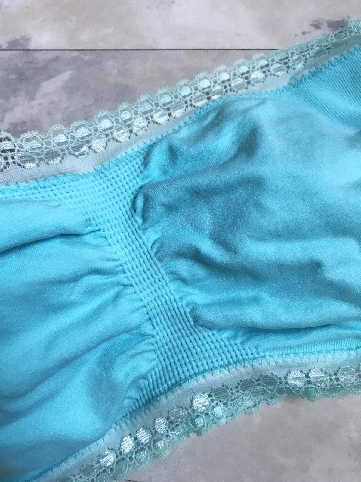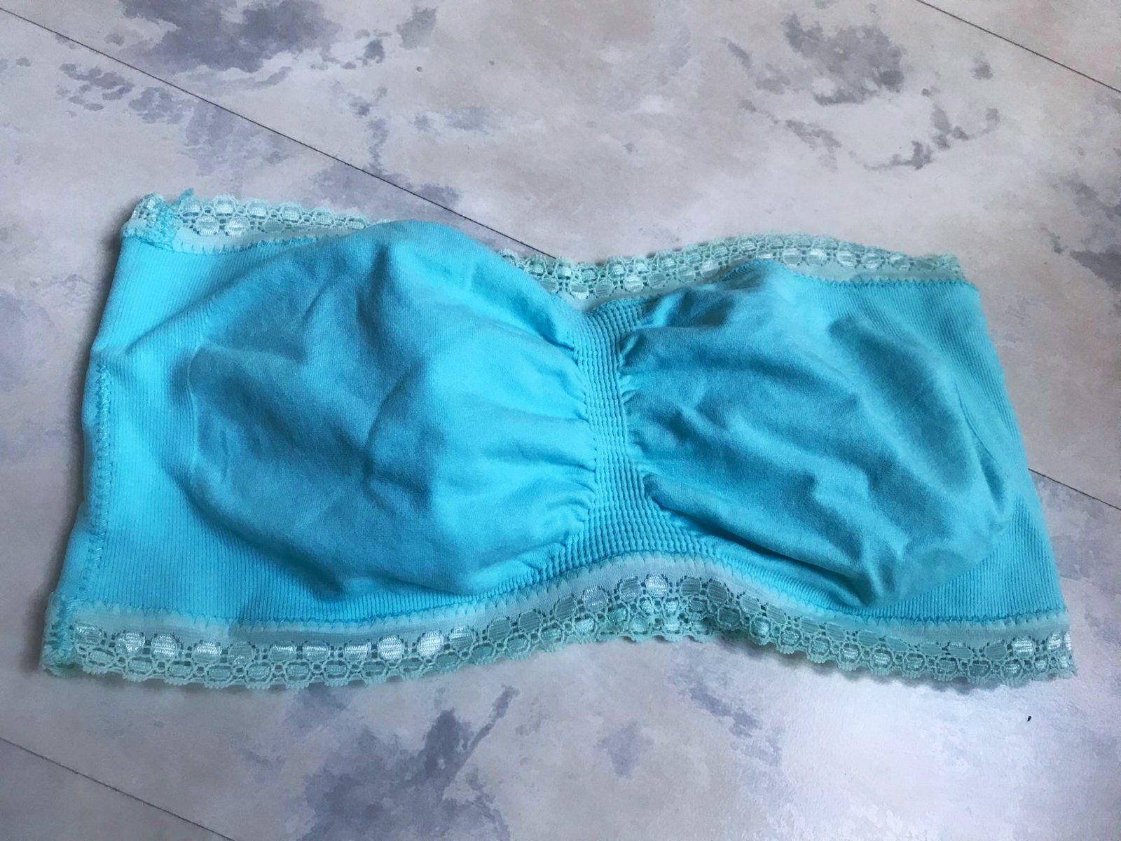 krásny strih a výborná kvalita elastickej bezšvovej podprsenkyy,neznosená,vhodná aj na leto samostane ako top,krásna farba = jemne do tyrkysa,ukončená jemnou elastickou krajkou,oblieka sa cez hlavu,šírka v kľude - nenatiahnutá = 30 x 2 cm, pekne sa poddá do 35 x 2 cm,výška na boku = 15 cm