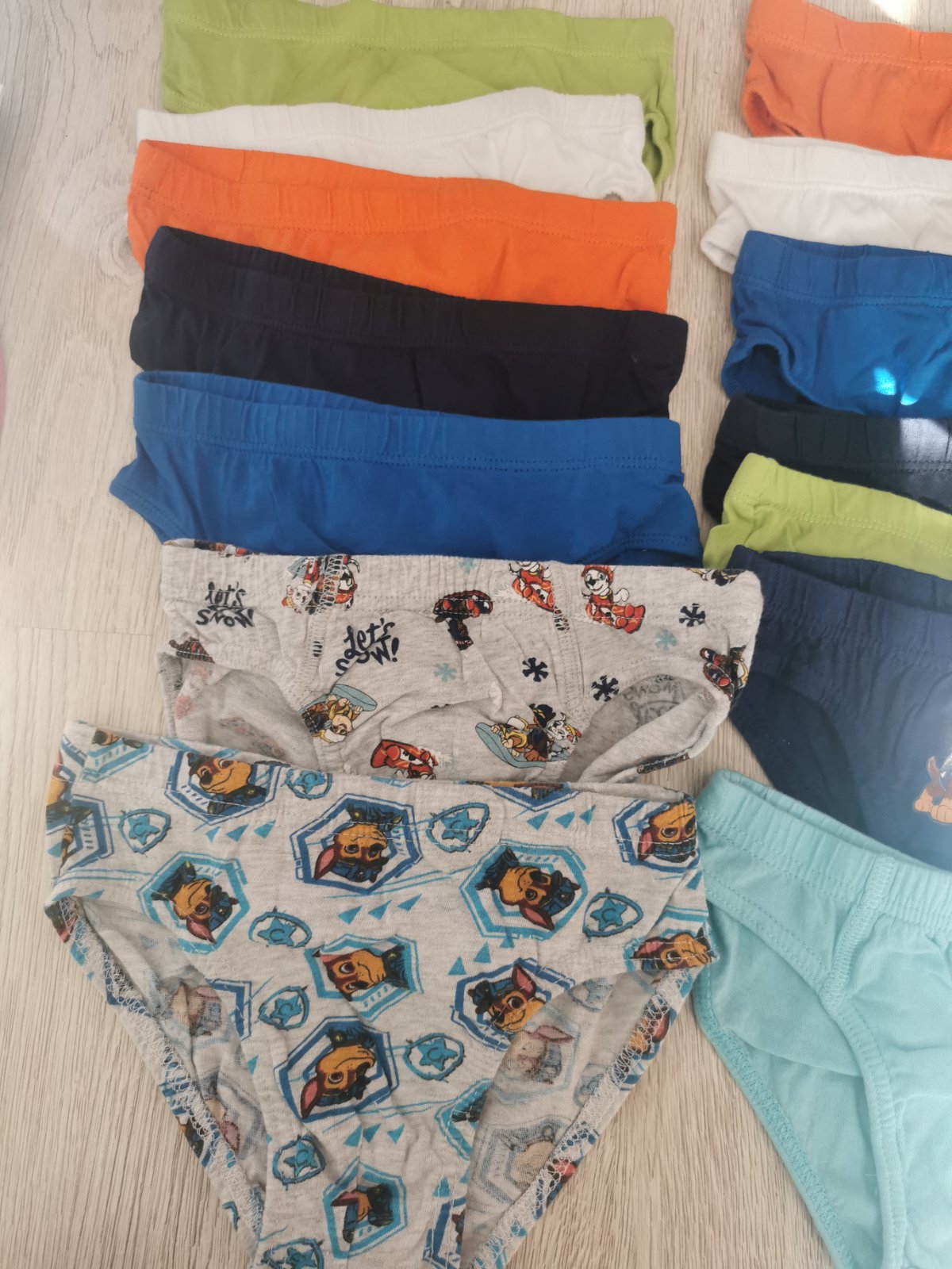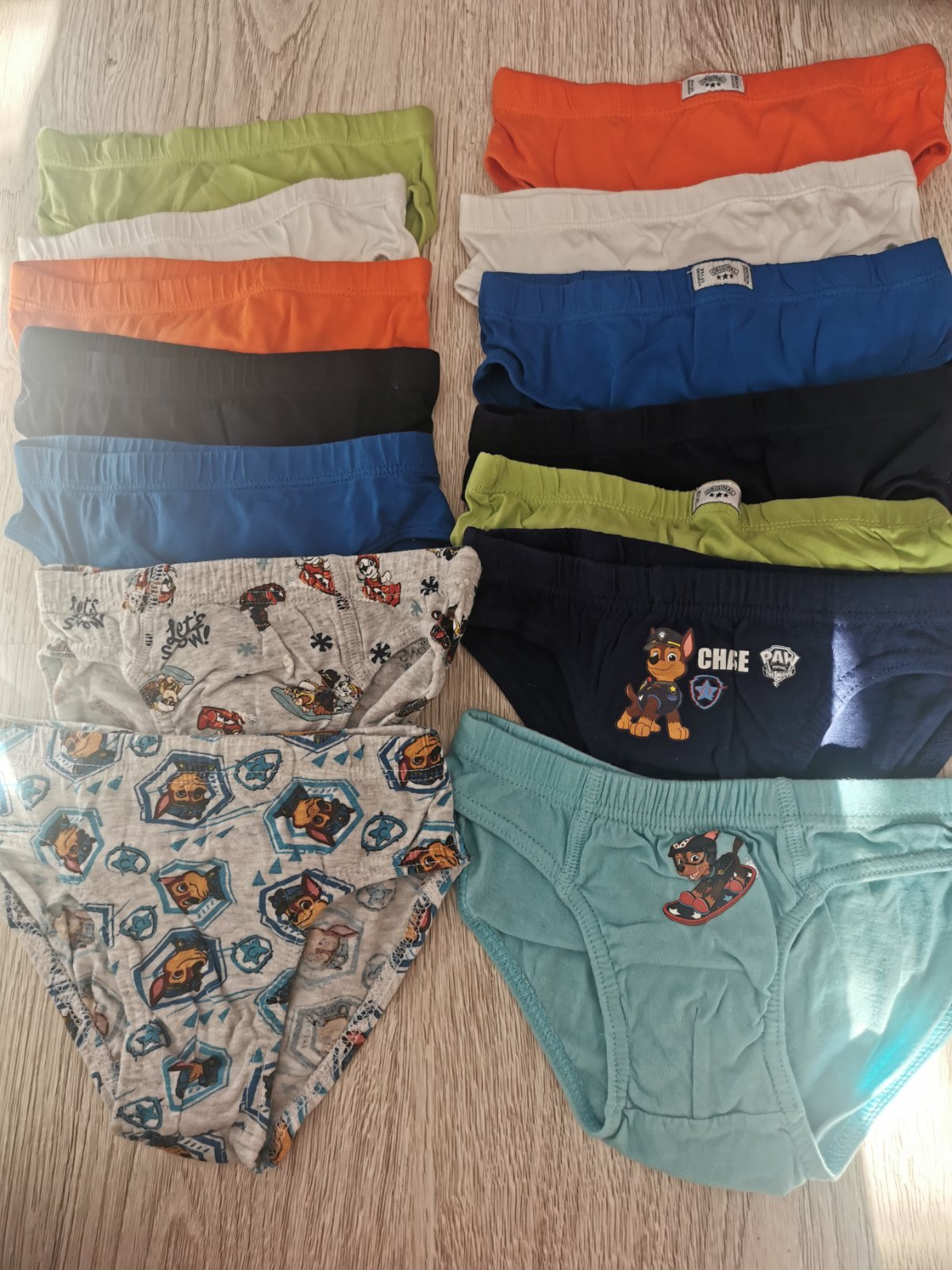 Balík obsahuje 10x slipy F&F veľkosť 6-7rokov a 4x slipy Paw Patrol 7-8rokov.