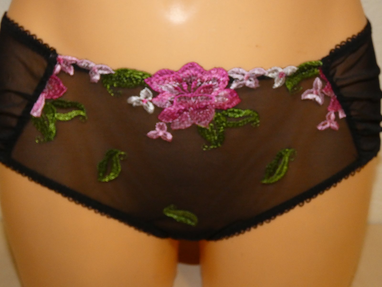 Nenosené bez poškodenia. Materiál je 75% polyamid,14%viskoza, 8% elastan a 3% polyester. Rozmery sú šírka v páse v nenatiahnutom stave 33 cm x 2 a v natiahnutom stave 43 cm x 2, sed je 25 cm.