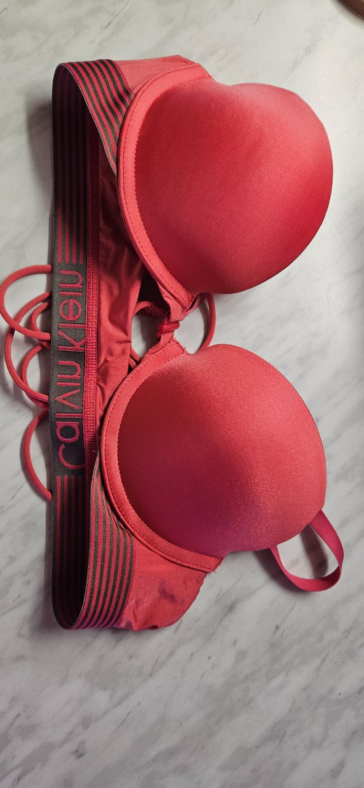 Je len odstrihnutá visačka, unáhlená kúpa, a už ju nezapnem. Veľmi pekná, zvnútra vystužená, zväčšuje prsia, výhodou je variabilita ramienok, dajú sa nosiť aj prekrížené. Veľkosť 75A, alebo 34a. Pô...