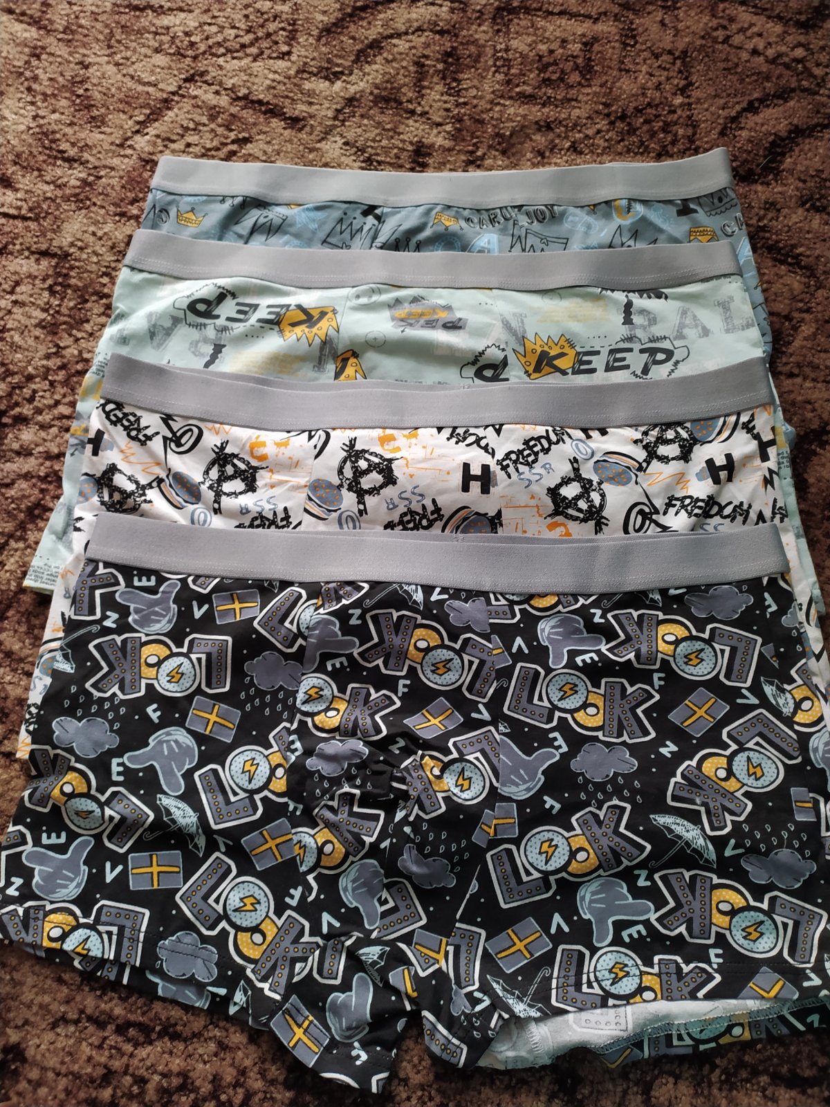 Bohužiaľ kupila som vnukovi,ale male -už sa nedalo vrátiť späť.Len skušane na spodne pradlo.Miery -v normalnom aj v natiahnuto. stave . Veľkosť pisana na boxerkach nezodpoveda veľkosti -preto som zadala menšiu veľkosť Cena spolu