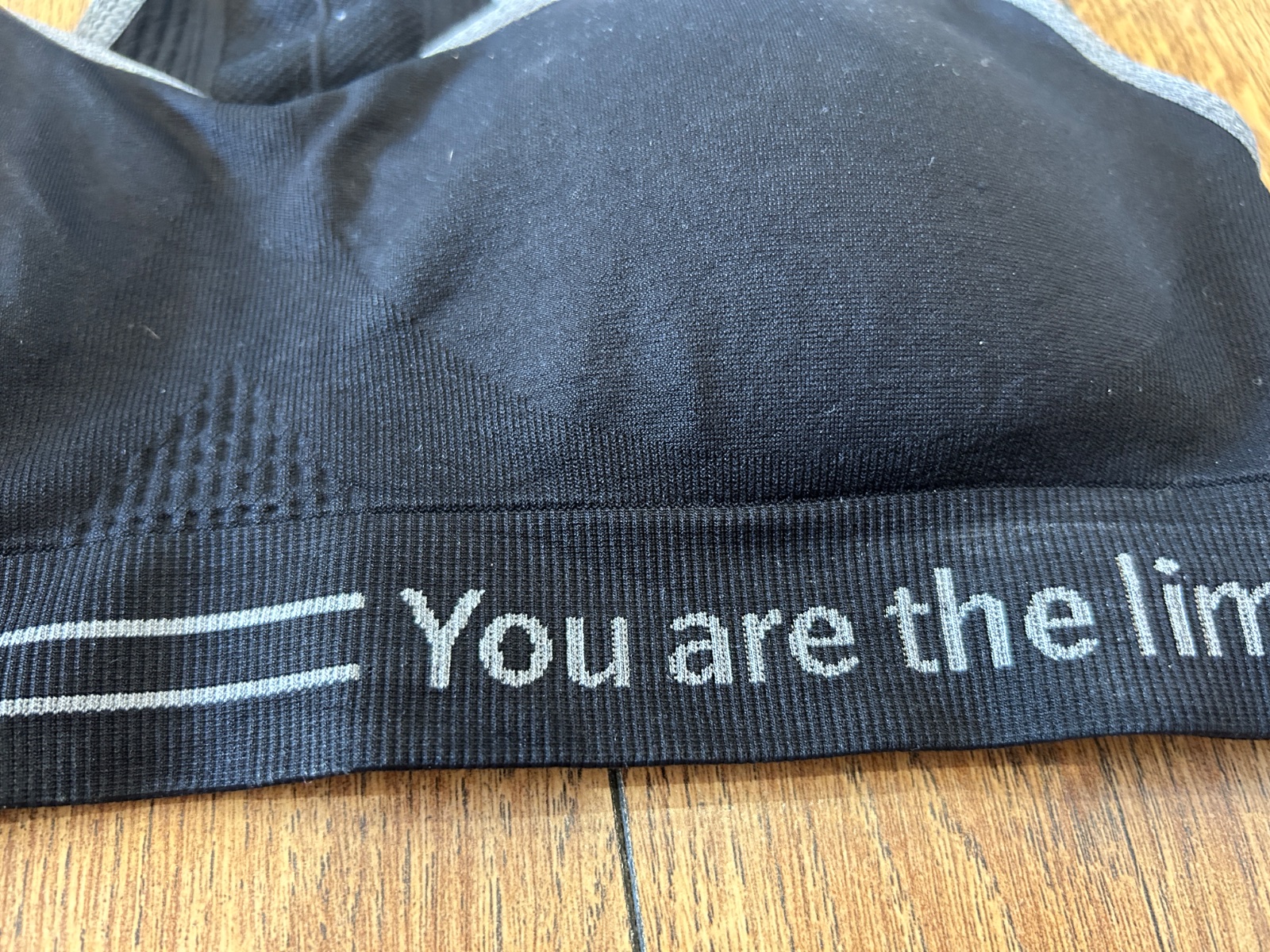 spodný lem so sivými prúžkami a nápisom „you are the limit“