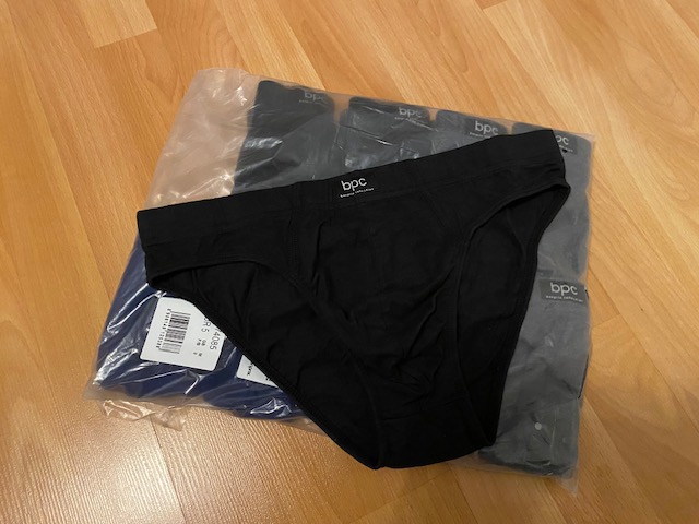 Kvalitné bavlnené slipy, farby šedá, čierna, modrá, my ich nevynosíme, tak posúvam ďalej. Neboli používané, sú ešte v originál obale. Pôvodná cena 28,99 €