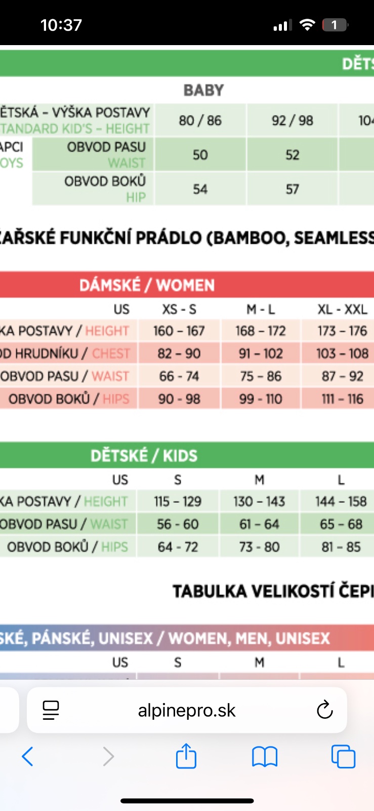 Bez poskodeni, detska velkost M, velkostna tabulka Alpinepro posledna foto