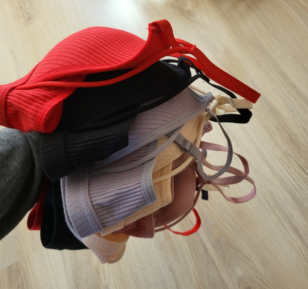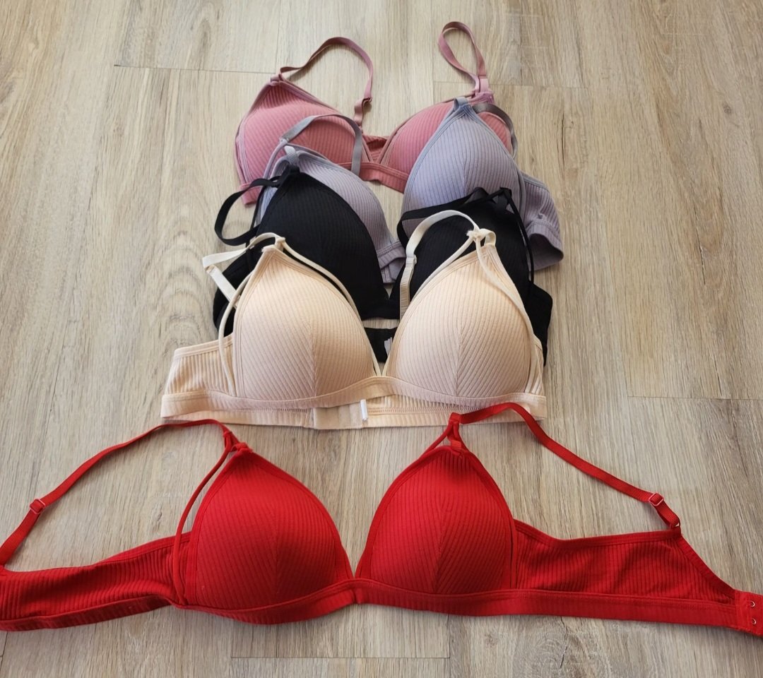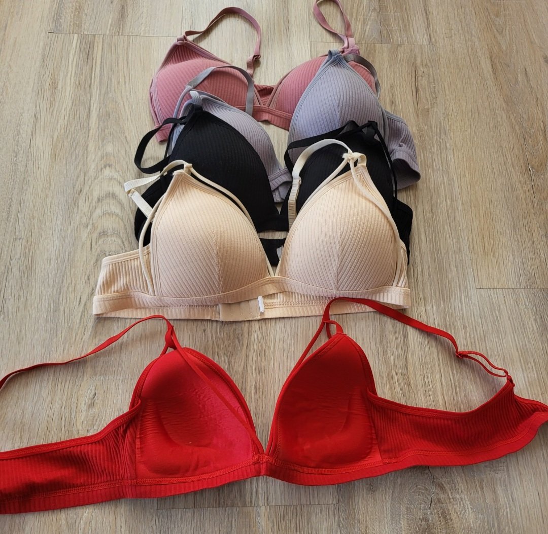 Cierna aj cervena boli vyskusane 1x a ostatne 3 su nenosene len oprate. Vel pisana XL no su skôr L/70B ai mensie C.Su na pInsie prsia cez ktore pekne vyniknu nasite snurky a material je velmi prijemny Cena je za vsetky spolu.