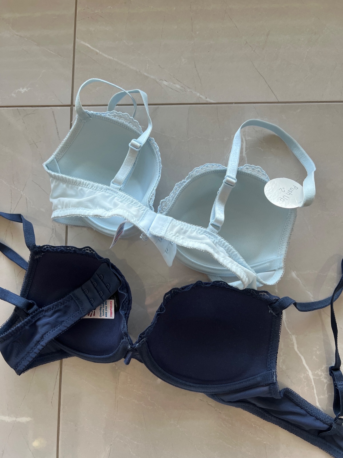 predám 2 ks push up podprseniek (bledo a tmavomodrá),veľkosť 70/B,bledomodrá - úplne nová,nenosená a tmavomodrá -2x oblečená,cena za oba kusy 6€+pošta,NEVYMIEŇAM!