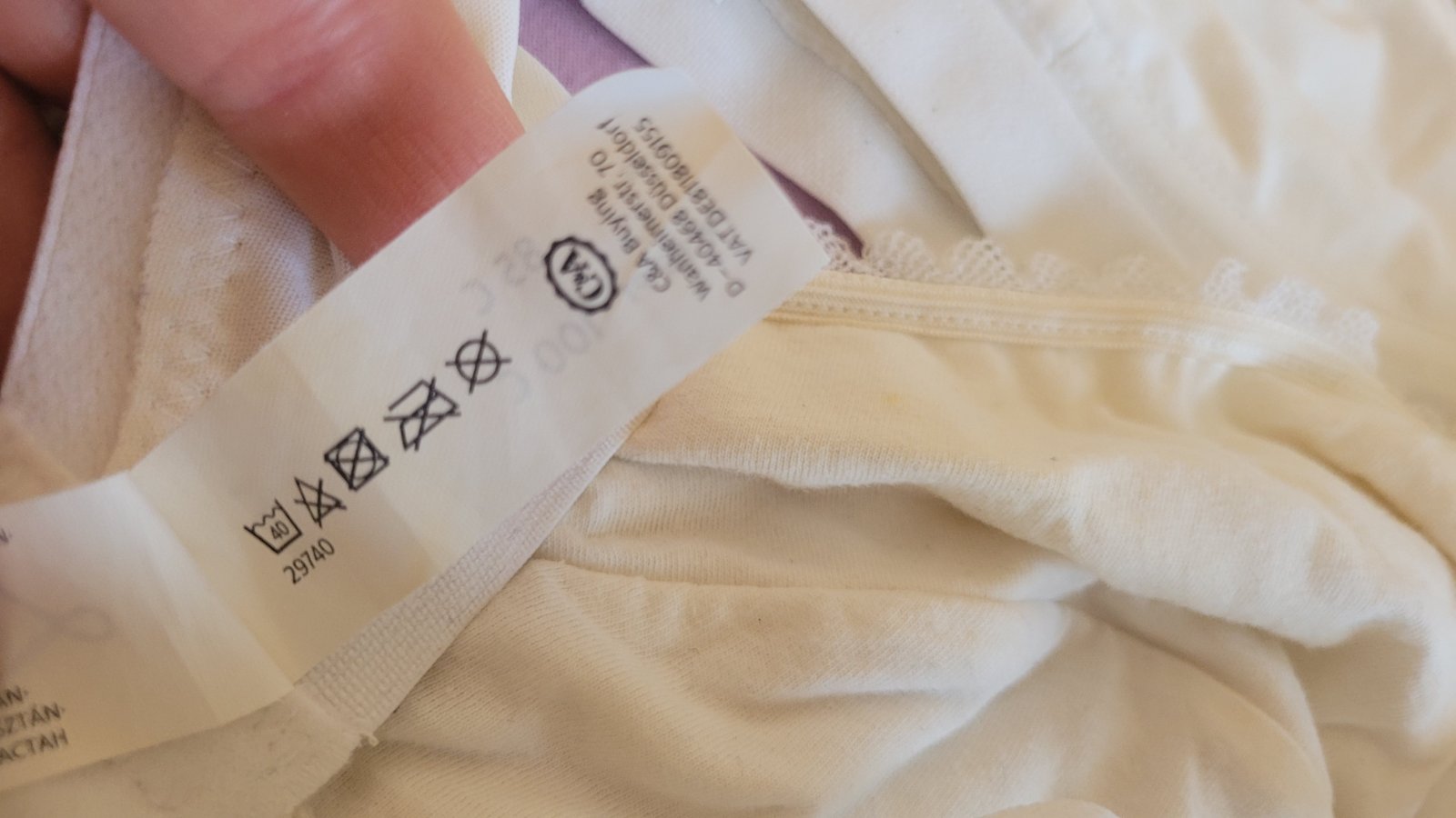Nosená bez poškodenia. Veľmi pekne sedí. Je mierne vystužená. Ramienka sú posuvné a dajú sa nosiť aj do kríža . Zloženie je 67 % bavlna ,29 % polyester a 4% elastán.