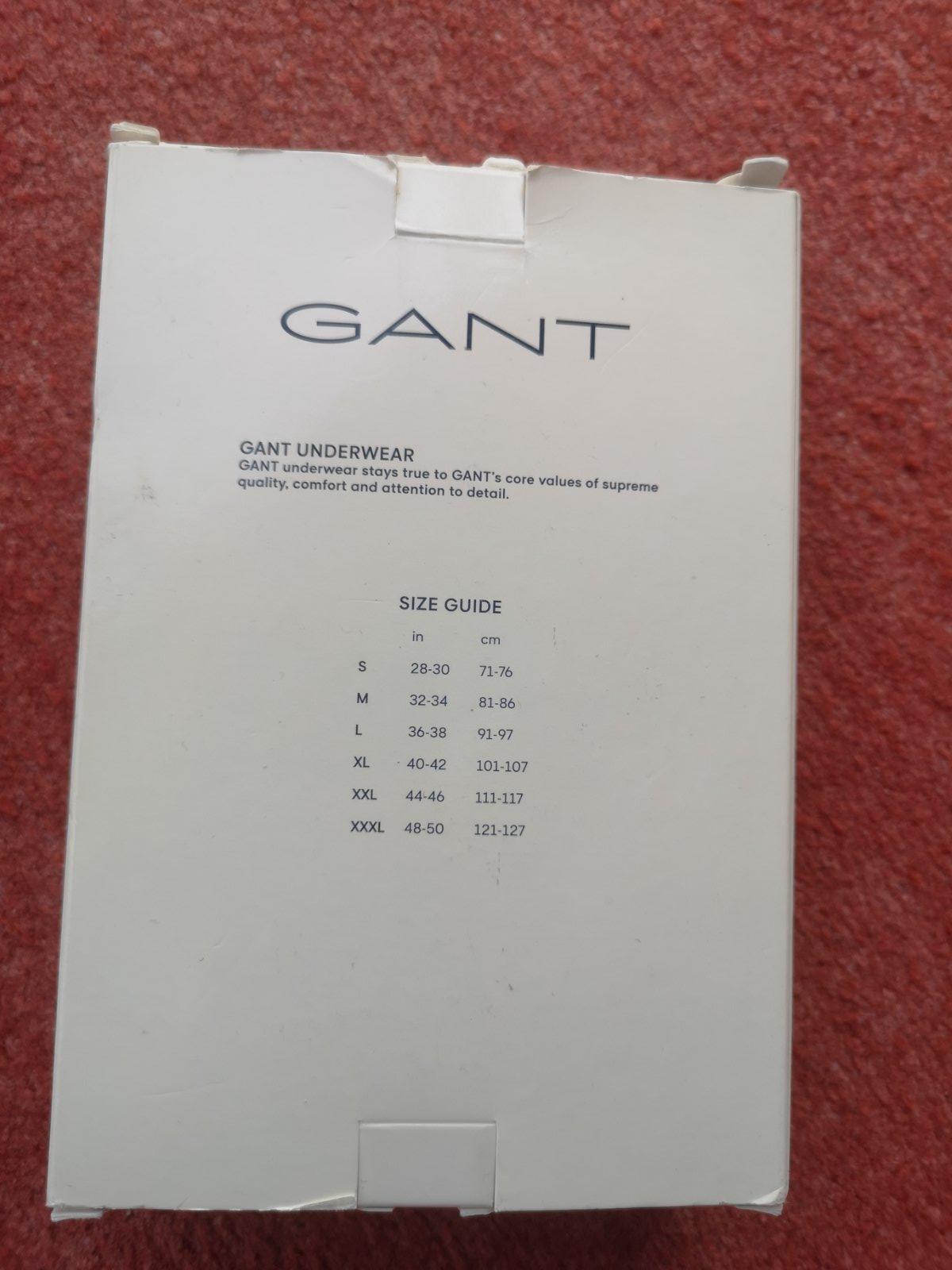 Boxerky majú klasický, moderný strih s hladkou textúrou materiálu a rozpoznateľné, jemné logo značky GANT na elastickom páse.