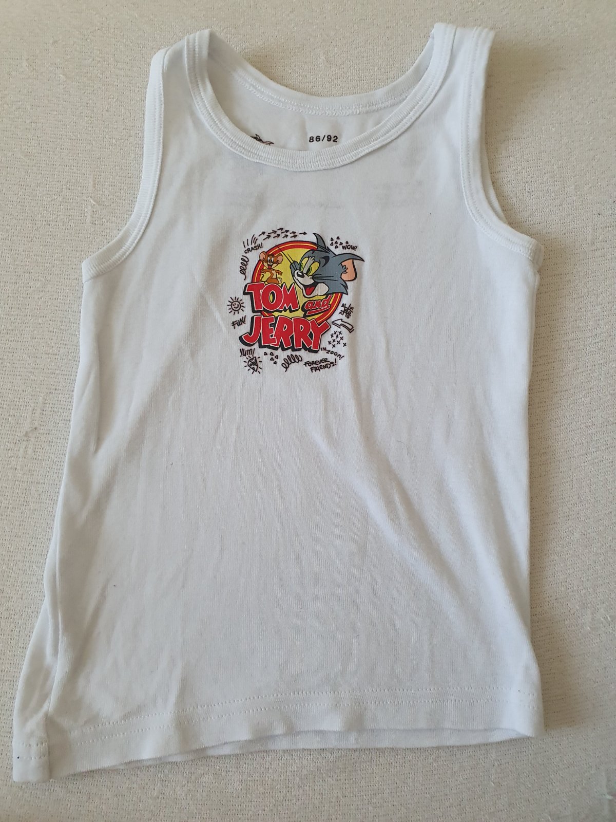 Zachovale tielko lupilu s motivom Tom&Jerry, vel 86/92, 100% bavlna. V pripade kupy viac veci dohodneme zlavu.