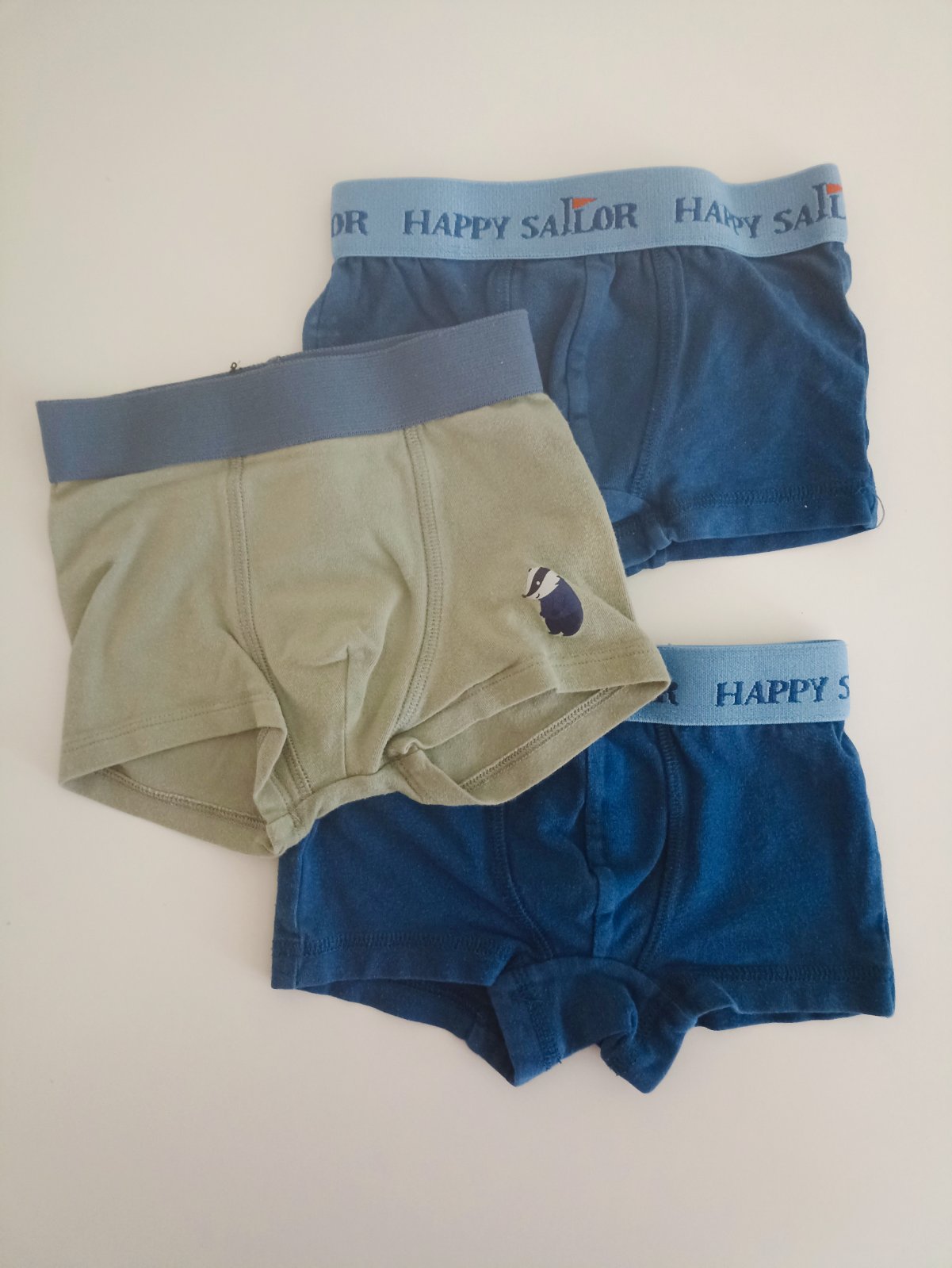 Chlapčenské slipy 3ks. Z celého balenia (7) sme tieto 3 nepoužili. Ani som ich nevybrala z krabičky. Veľkosť 86/92