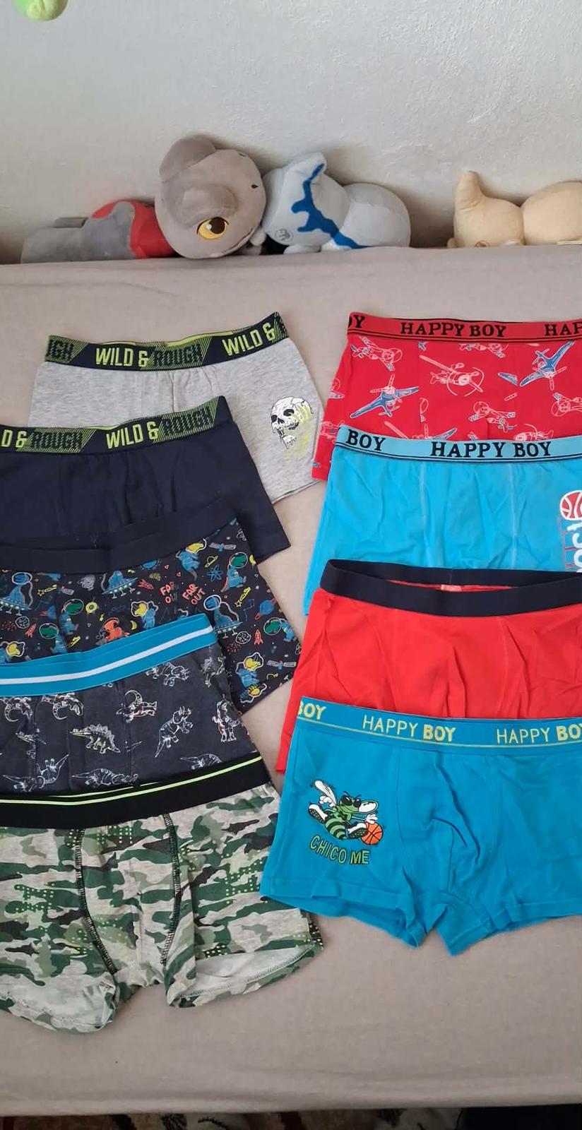 9x boxerky veľkosť 134/140, niektoré značené ako väčšie, ale velkostne súrovnaké, C&A, TAKKO aj iné, 4 ks len opraté, ostatné pekný stav, cena 16 €