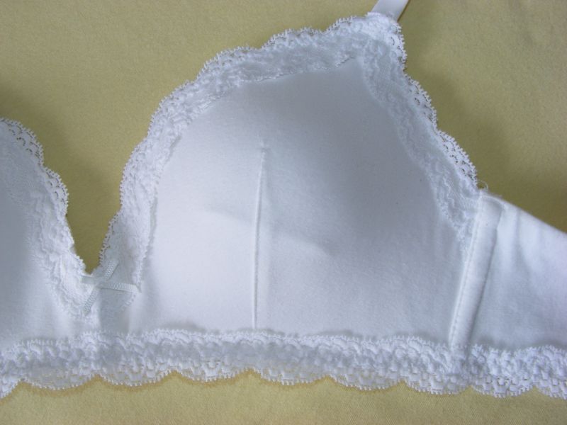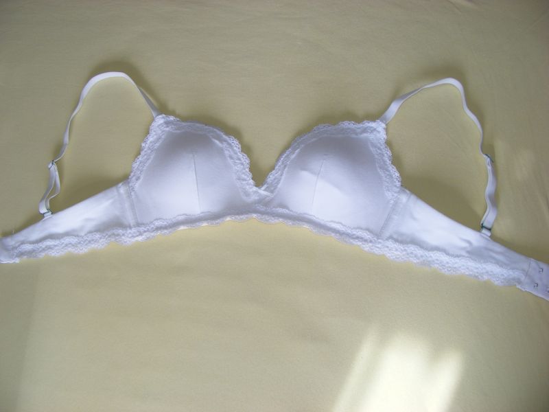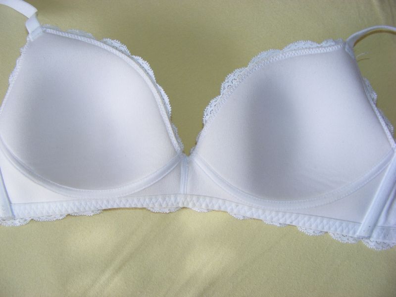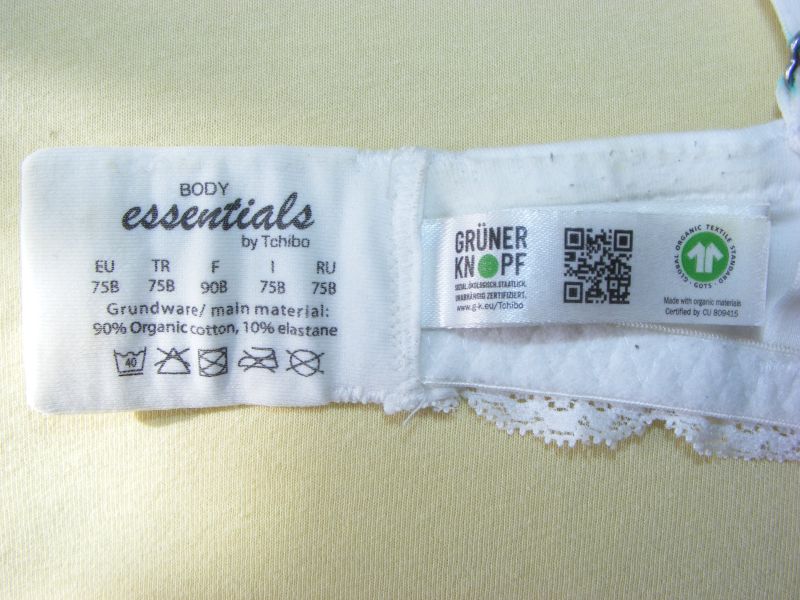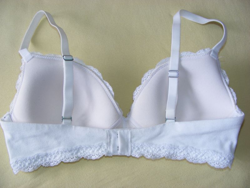 Podprsenka zn. Tchibo, jemne tvaruje bez kostíc, ľahko vatované košíčky s jemnou čipkou, ramienka s nastaviteľnou dĺžkou, trojradové zapínanie na háčiky. Materiál 90% organická bavlna, 10% elastan.