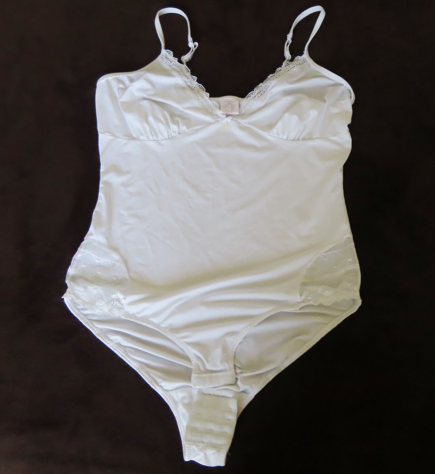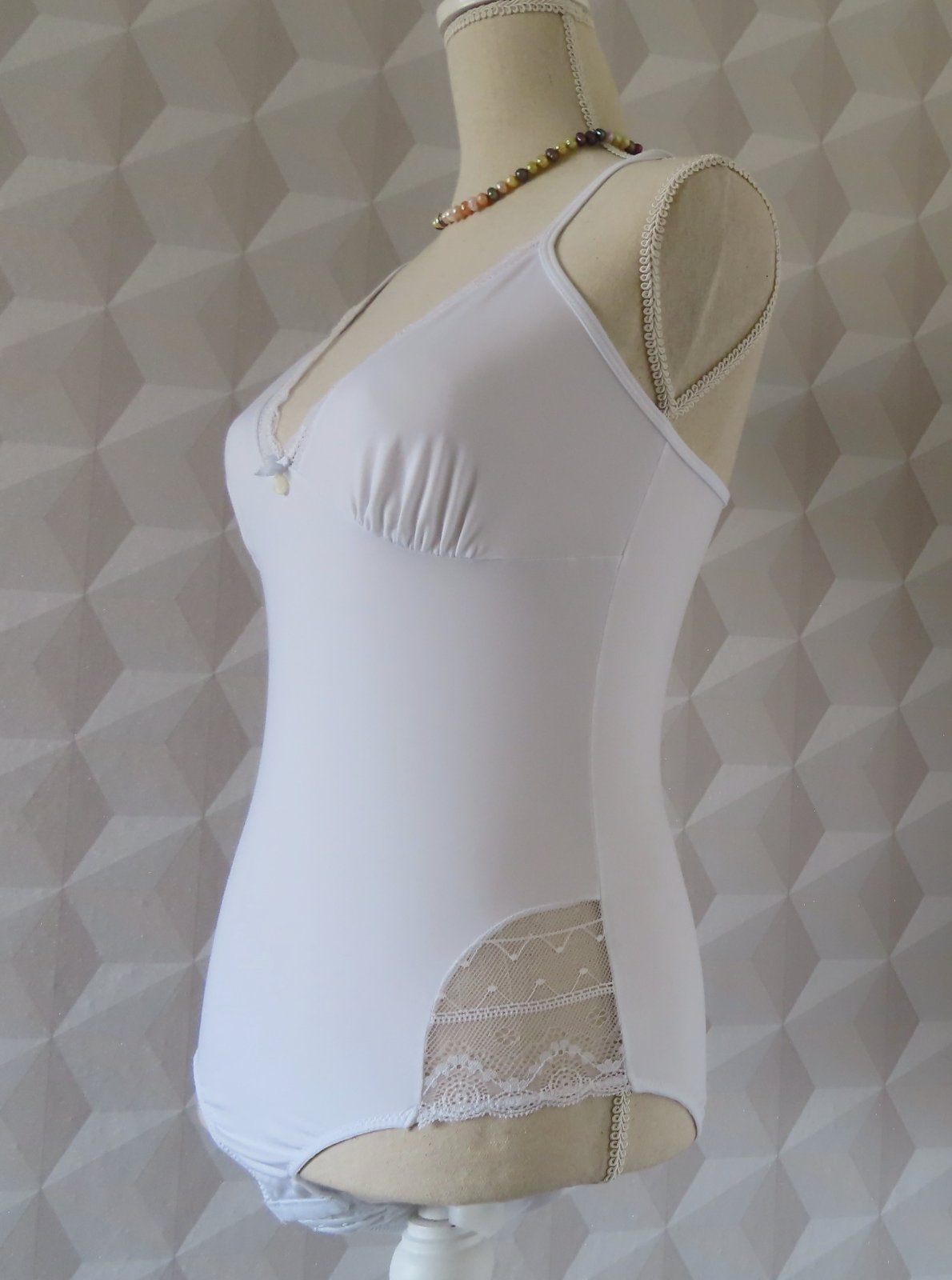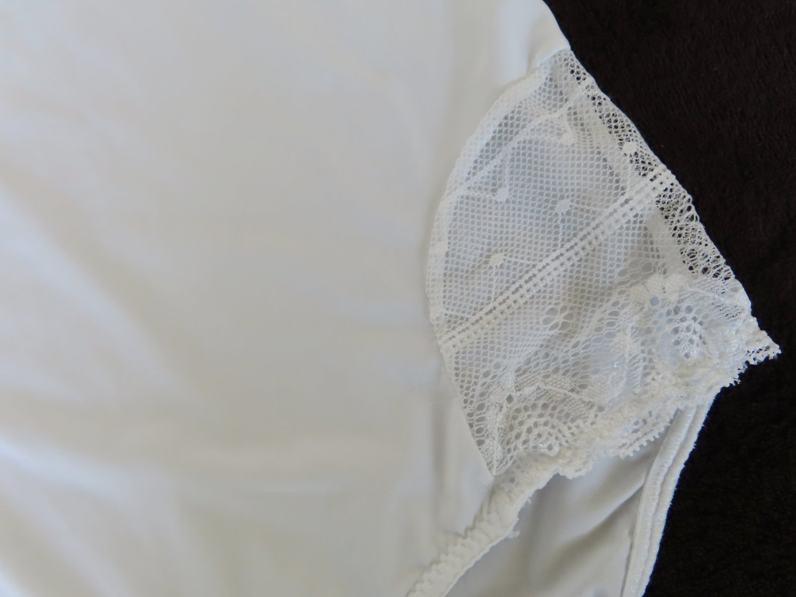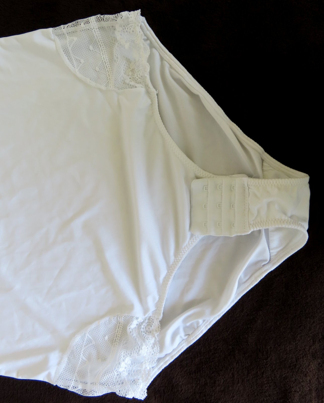 Na tenké nastaviteľné ramienka, po bokoch vložený vyšívaný tyl.