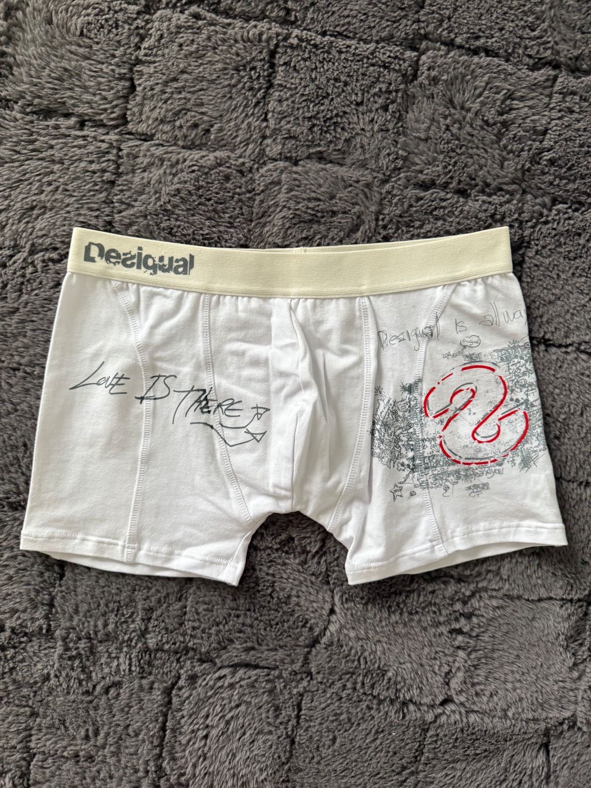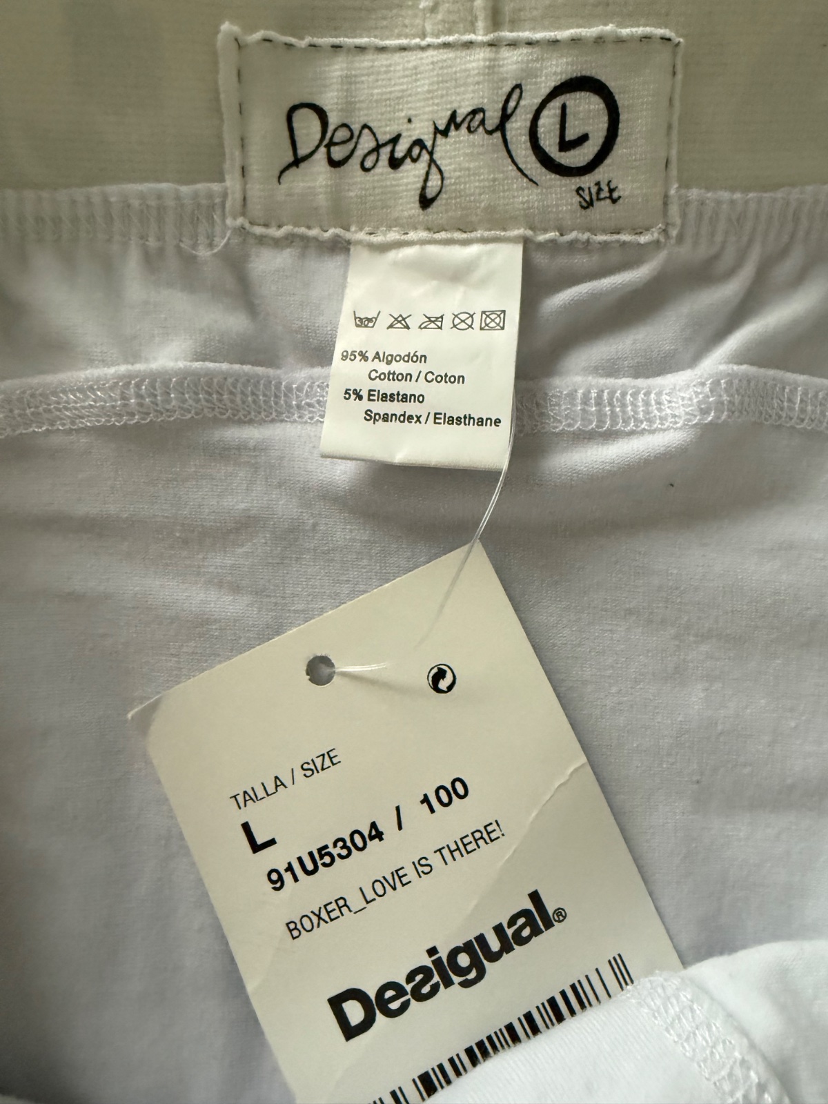 Biele bavlnené boxerky Desigual. Zaujímavý dizajn🙂🙈Velkost L. Nove s visačkou.