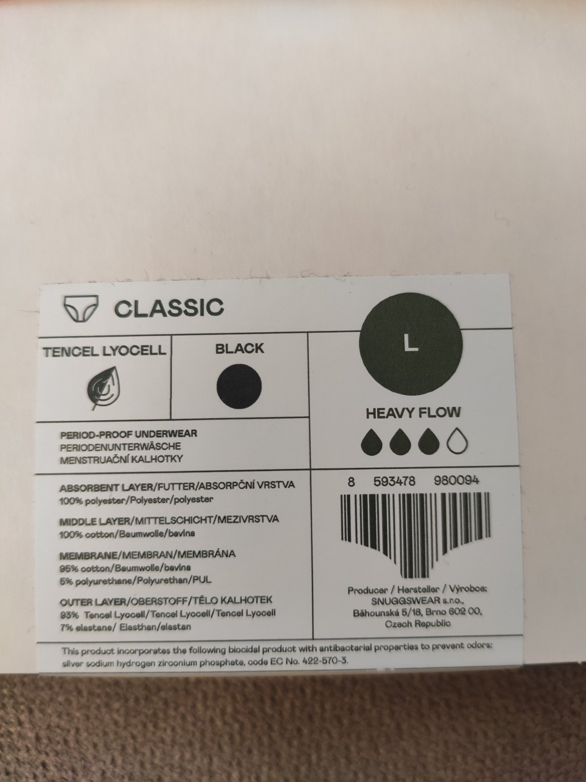 Menštruačné nohavičky snuggs, veľ L, clasic tencel, cena 27€, nové neskúšané!