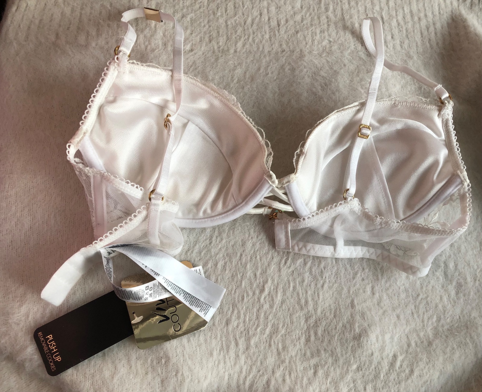 Nová biela čipkovaná push-up podprsenka, 75 C