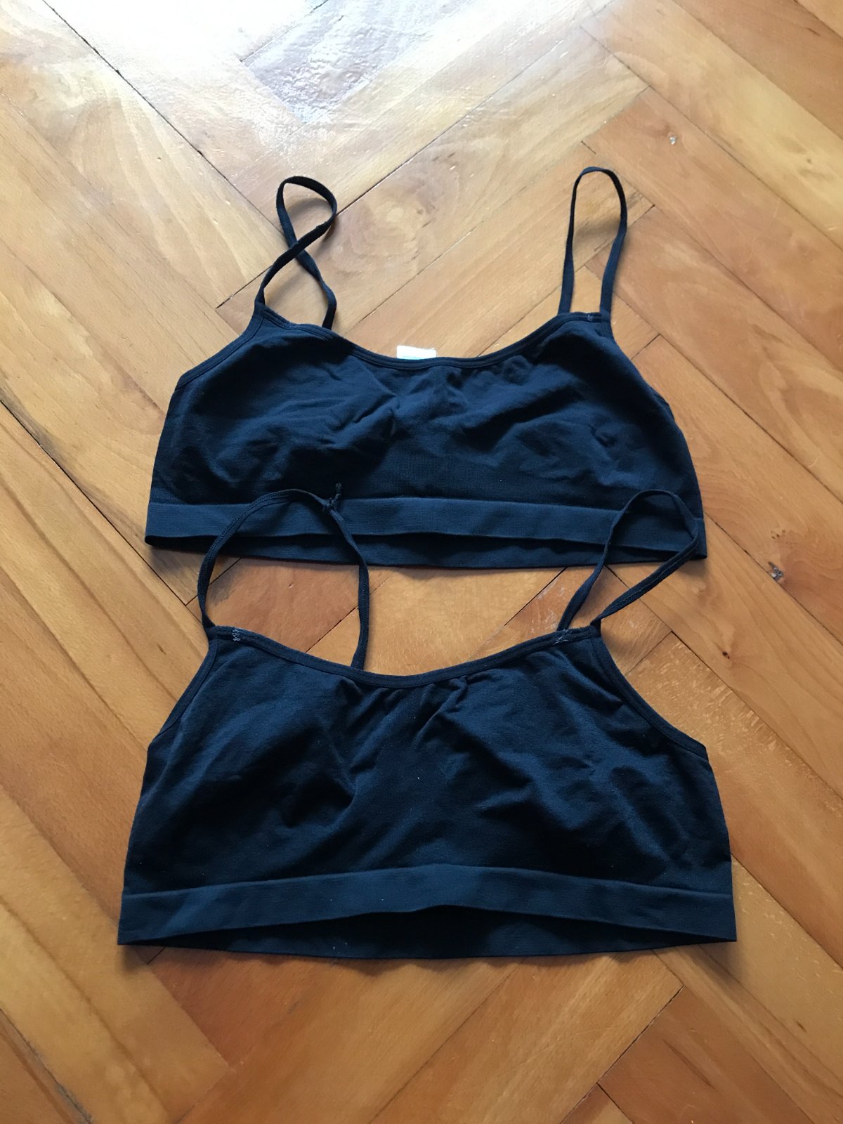 dva kusy jemných, elastických, pohodlných podprsenkových topov v čiernej farbe
