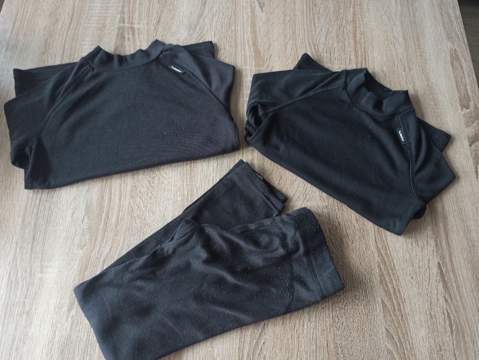 Termo prádlo trička 2ks, celková dĺžka 45-47cm, rukáv od krku 52-53cm, spodný rukáv 35-36cm, šírka pod pazuchami 2x33-36cm. Spodné nohavice pás na gumu 2x26cm, celková dĺžka 67cm, vnútorná 50cm. Dobrý nosený stav. Žmolky. Len spolu.
