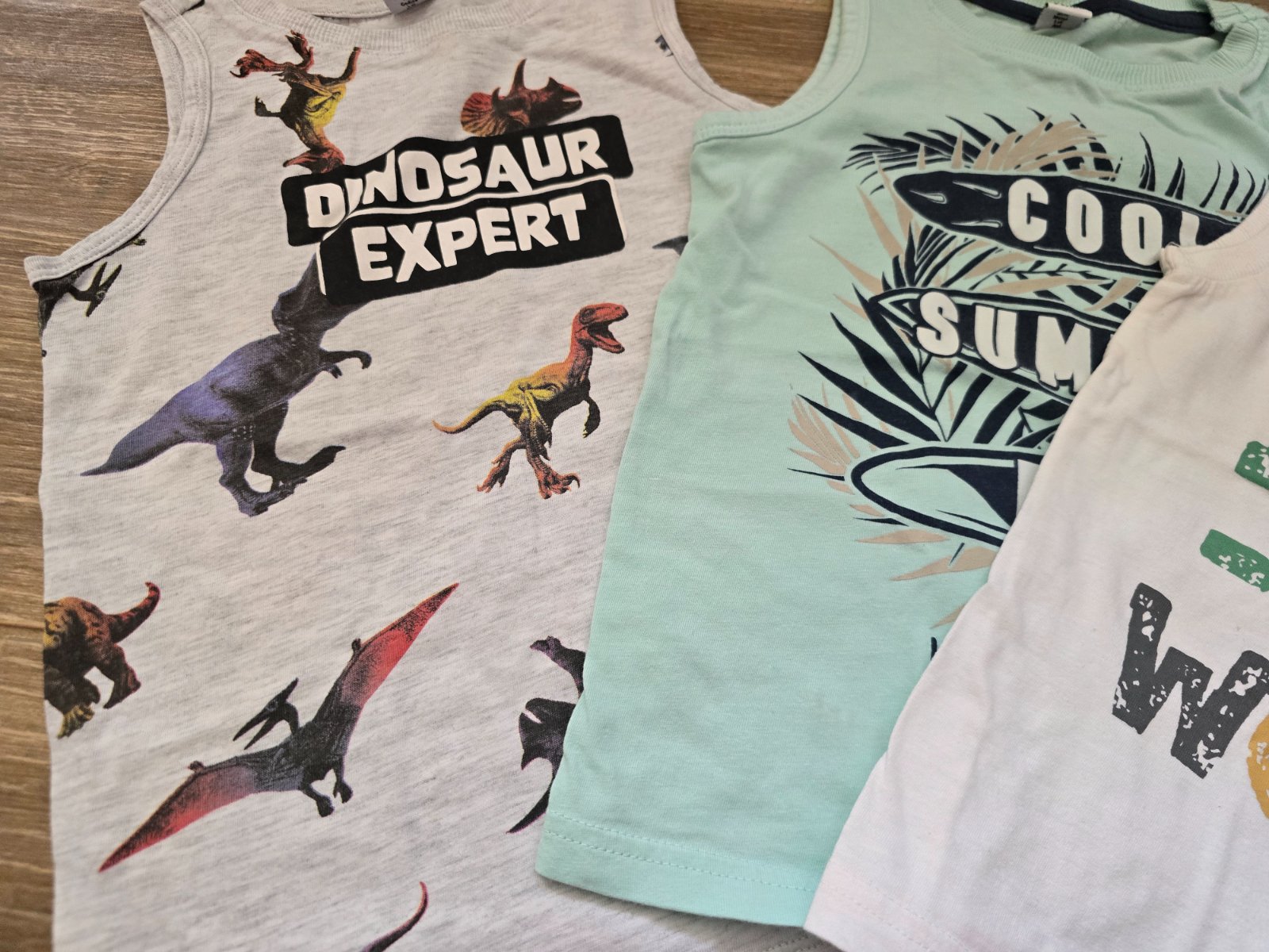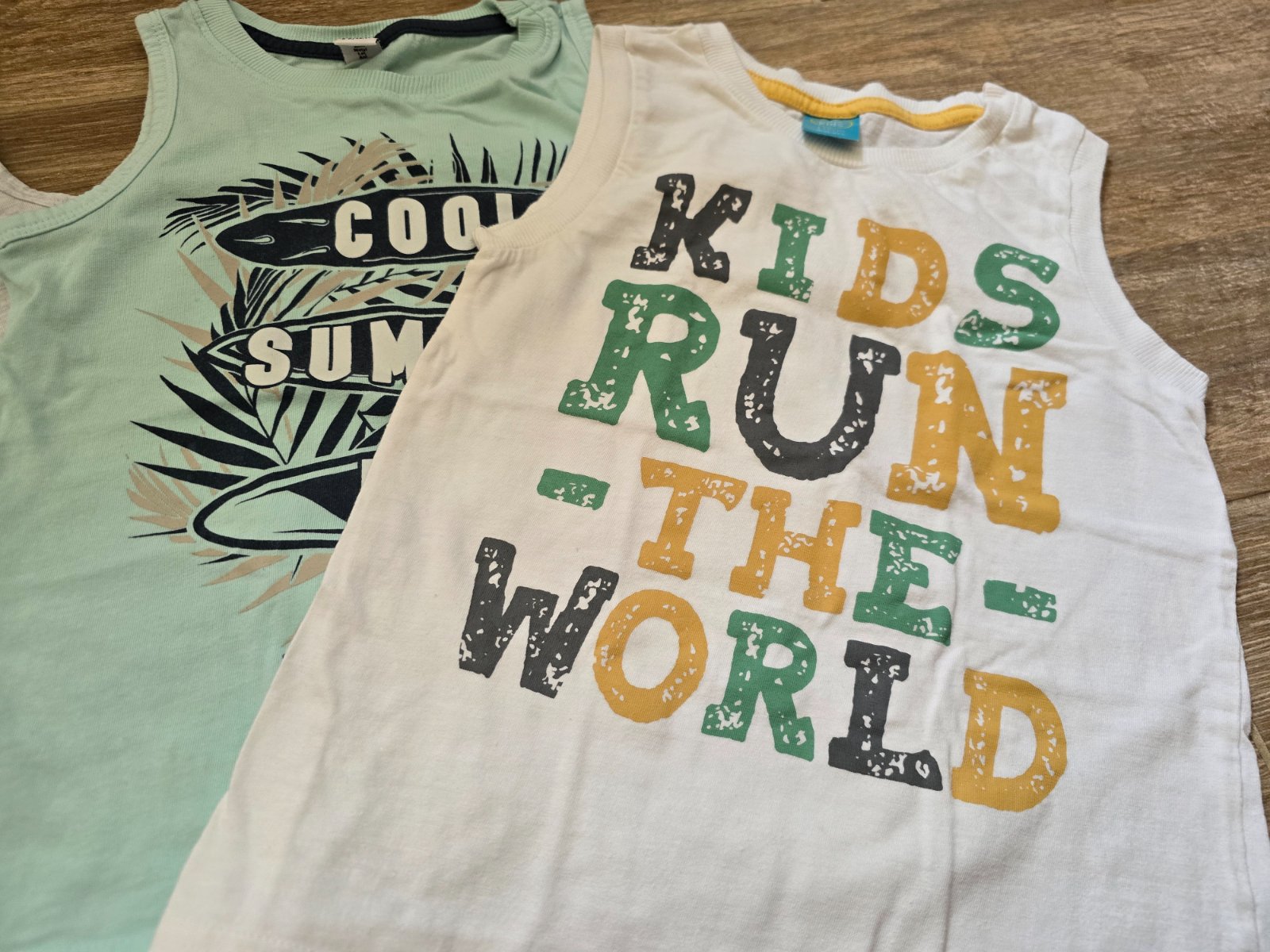 Biele : veľ.110/116. veľmi pekný nosený stav. Modré : zn. Dopodopo. veľ. 122/128, ale sú rovnako veľké ako biele. Tiež pekný nosený stav. Cena spolu.