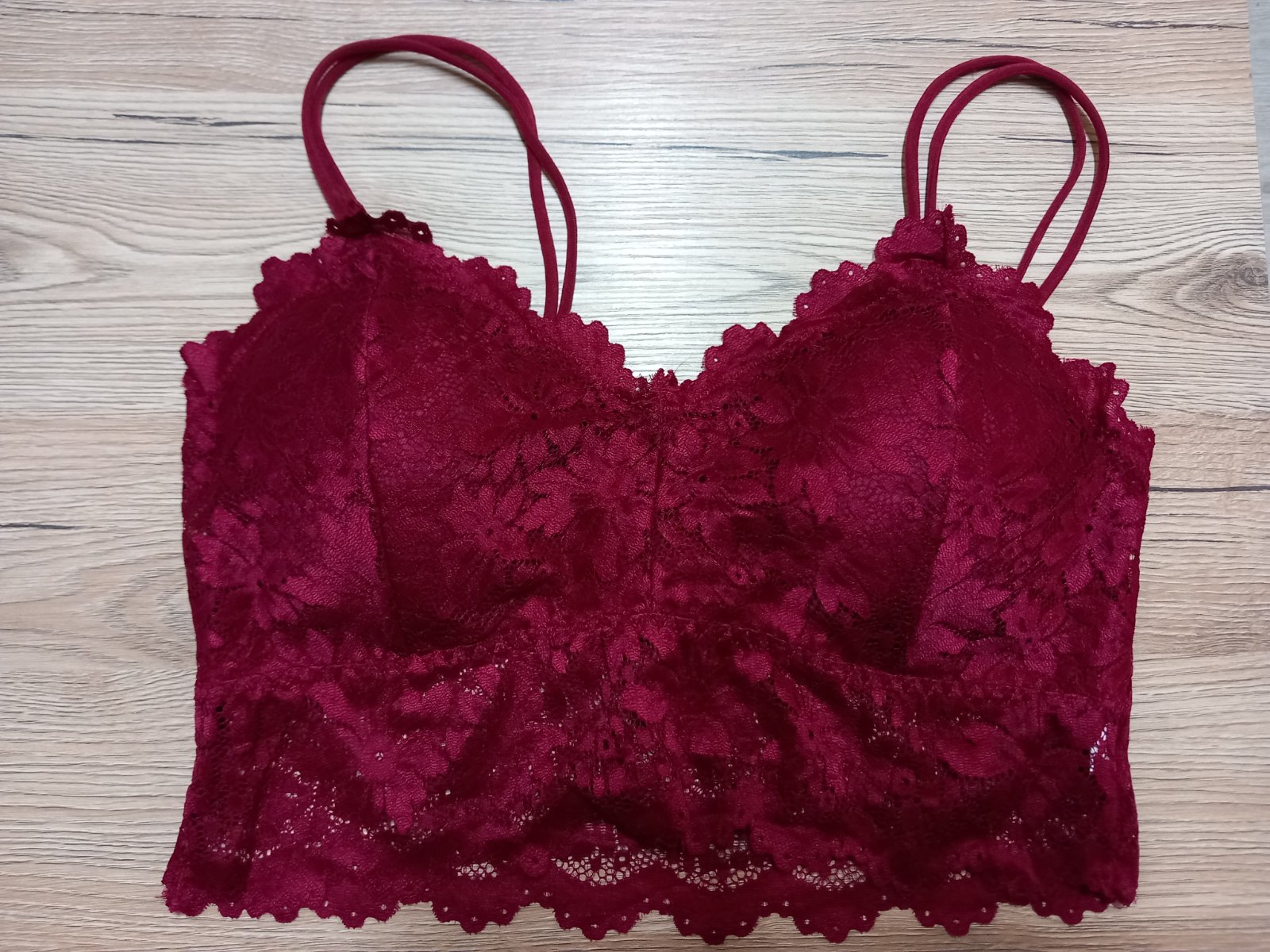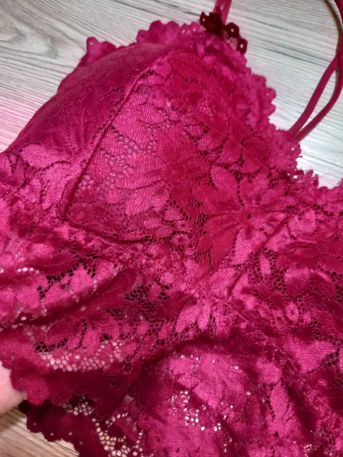 Je z prijemneho elastickeho materialu, na spodu je čipka na ktorej sa zvnutra nachadza “pogumovanie” aby sa nešmykala a nekrčila