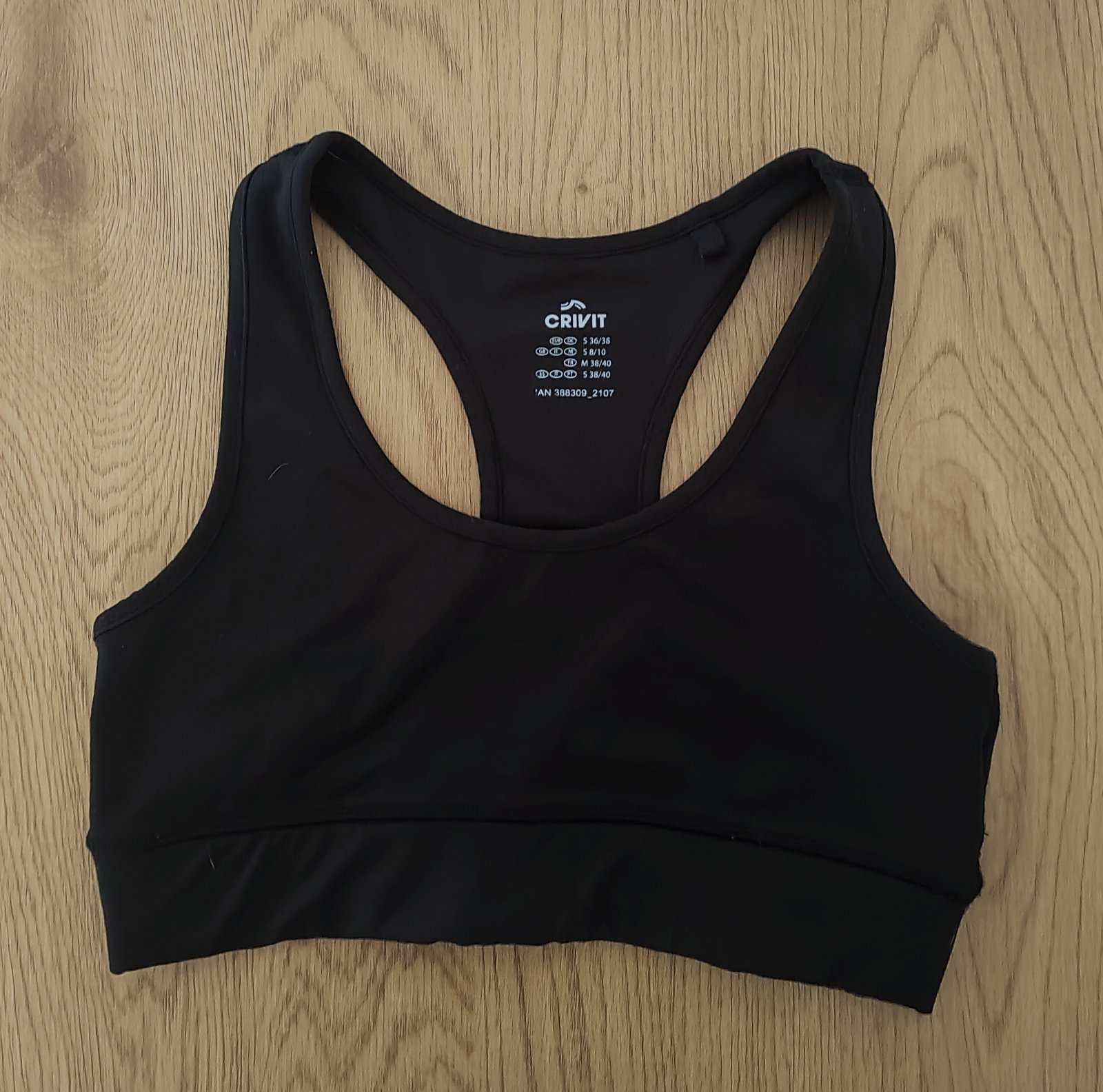 Športová podprsenka S, 36/38, Crivit, Lidl. 45 % polyamid, 32 % polyester, 23 % elastan. Cena bez poštovného.