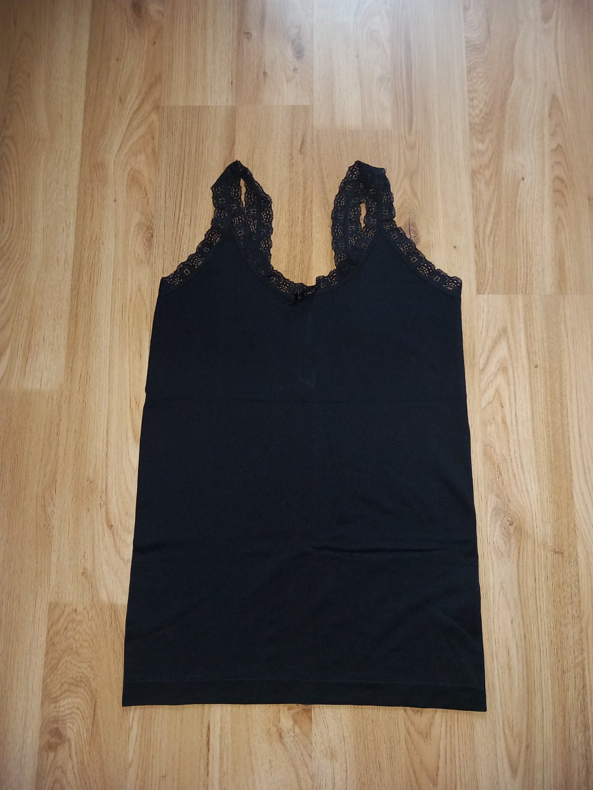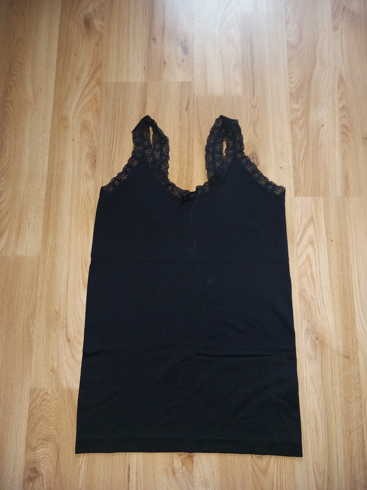 Čierne sťahovacie tieklo s čipkovanými ramienkami, výborný stav, veľkosť M.