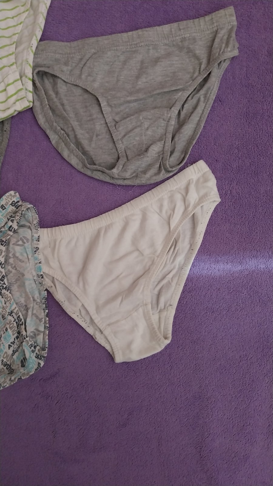 5x nosené slipy. Kupované v tescu - štítky odstrihnuté, aby neškriabali. Nosené , môžu sa už objaviť aj známky nosenia. K objednávke nad 10 € pribalím zdarma - vyžiadajte si.
