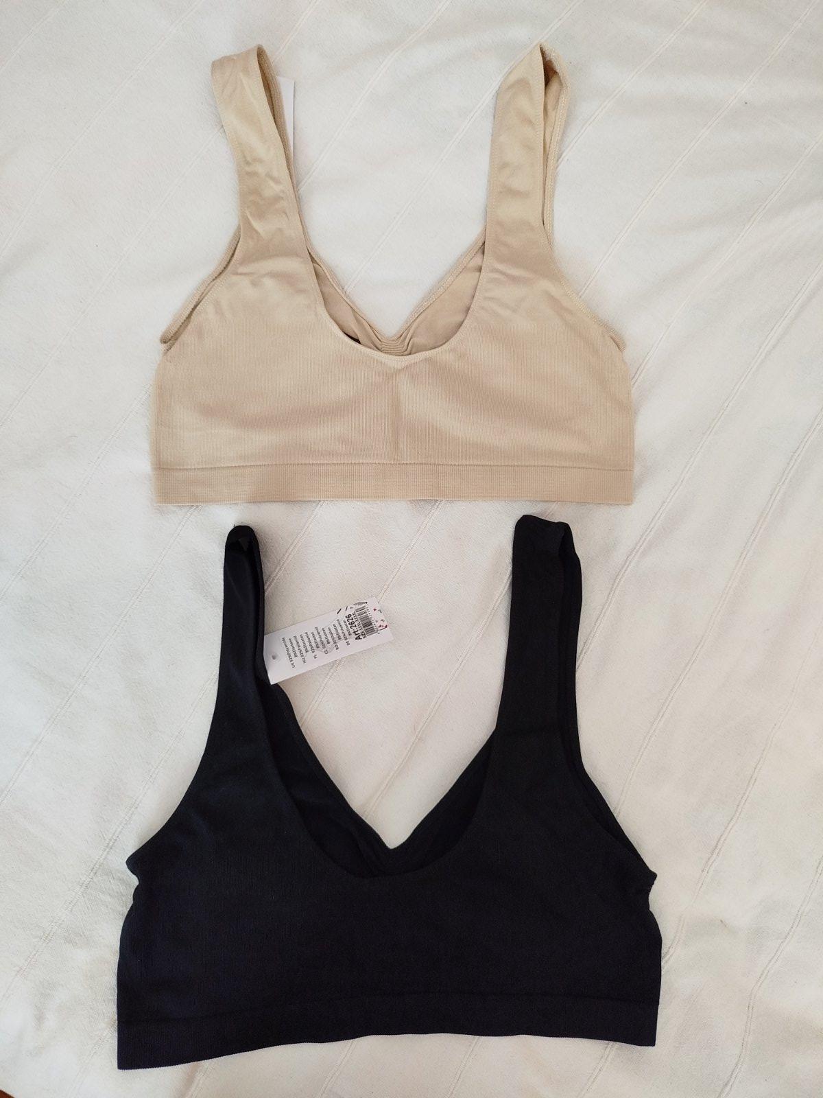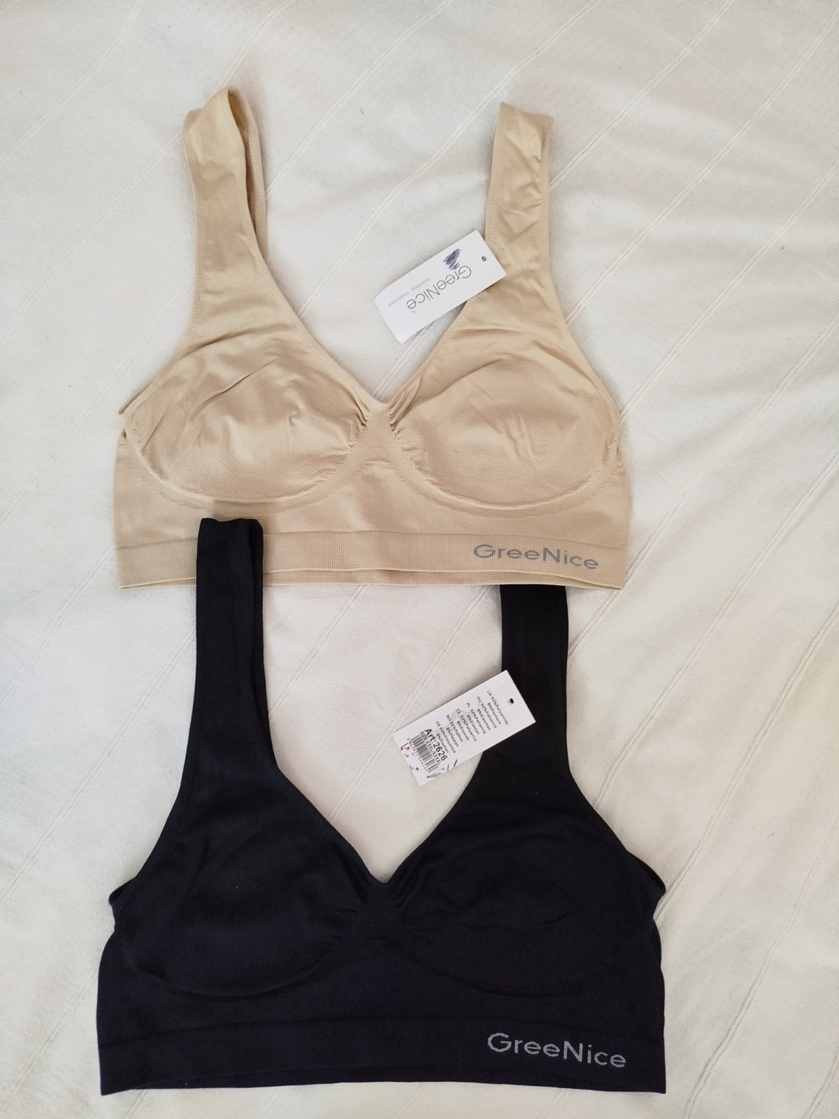 Dve podprsenky rovnako veľké XXL/XXXL, čierna a béžová. Riaďte sa rozmery na fotkách, podľa mňa sú menšie. Cena za obe. Jednotlivo 4,50€.