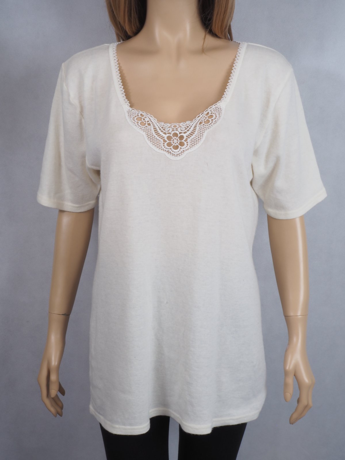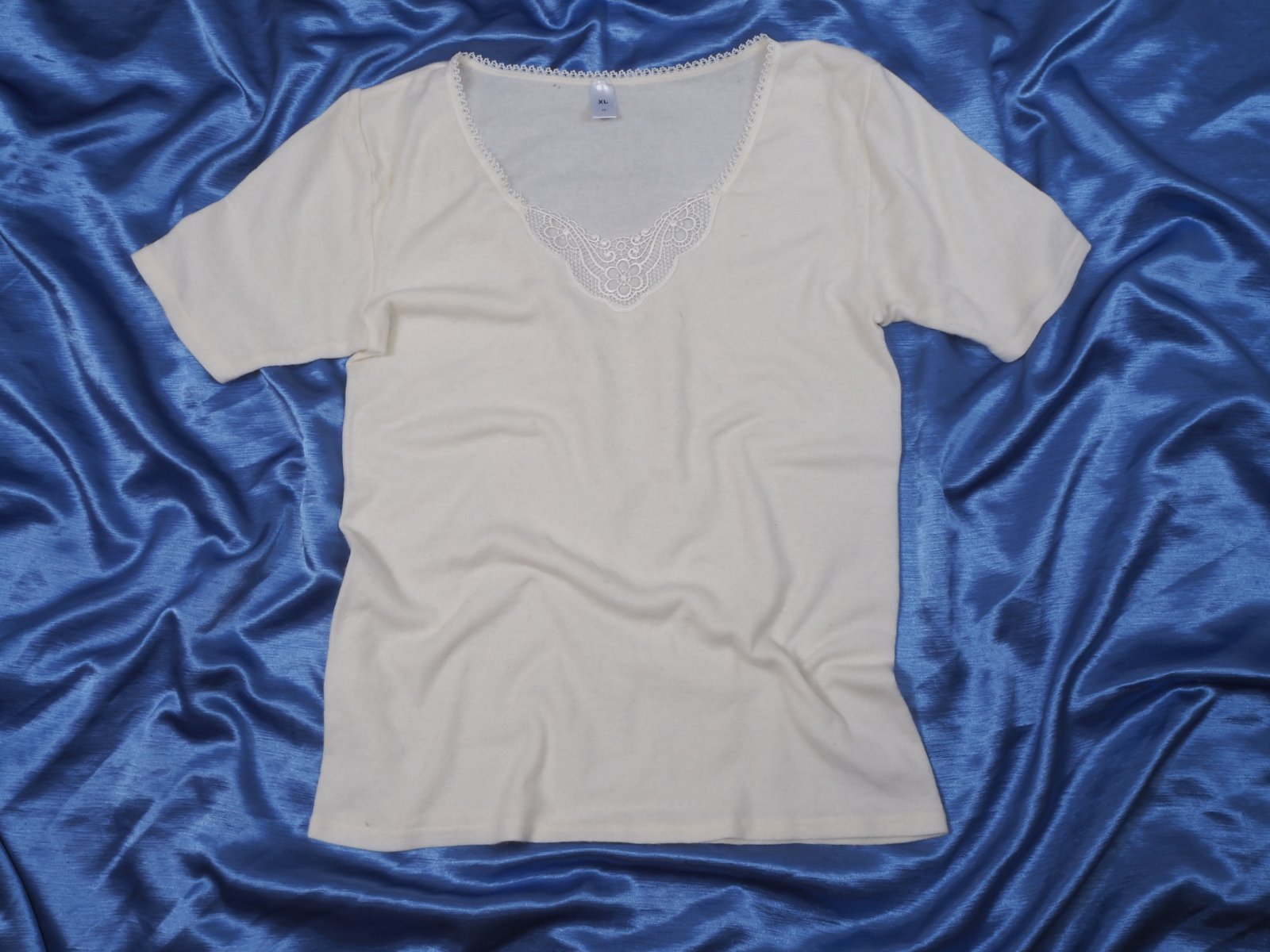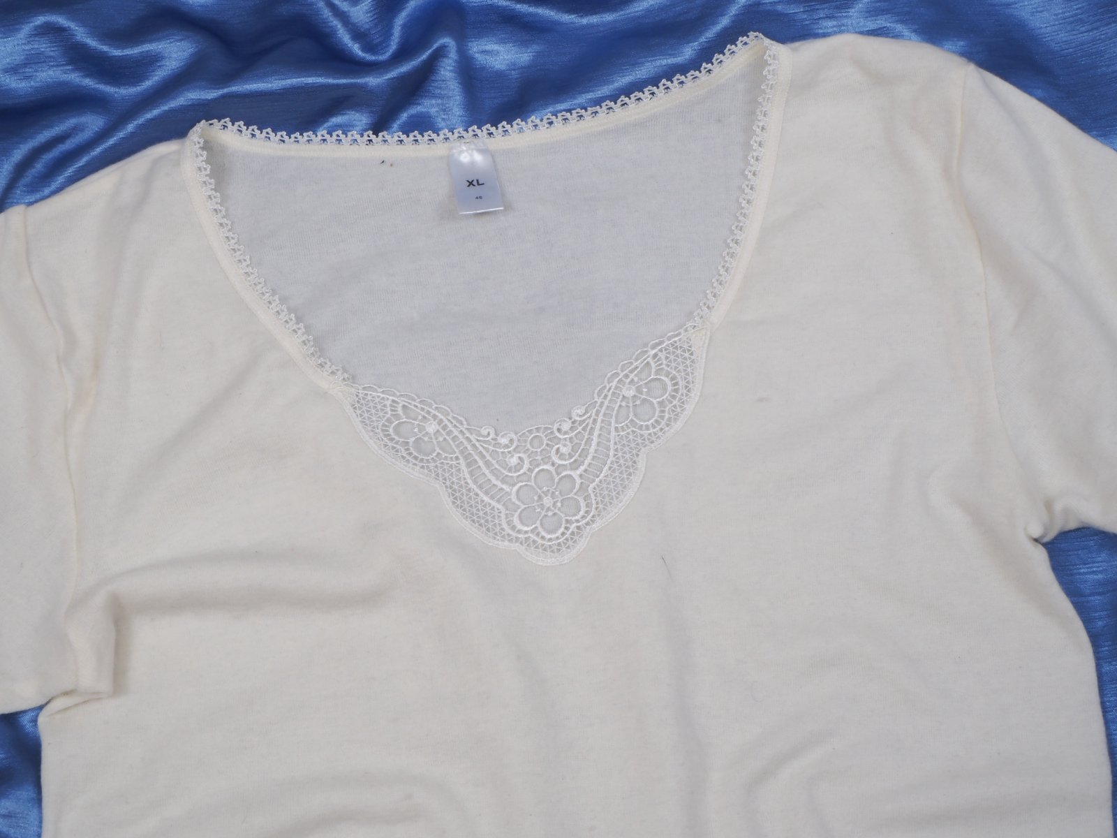 Kvalitné spodné vlnené tričko, zdobené čipkou, materiál 40% vlna, 40% akryl, 20% nylon, super stav.