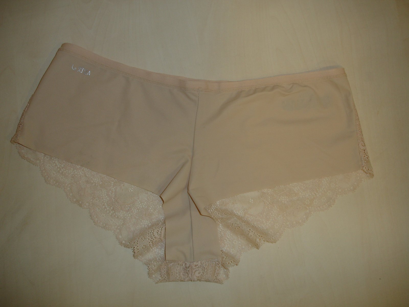 Nosené bez poškodenia. Materiál je 80% polyamid a 20% elastan. Rozmery sú šírka v páse v nenatiahnutom stave 33 cm x 2 a v natiahnutom stave 42 cm x 2, sed je 22 cm.