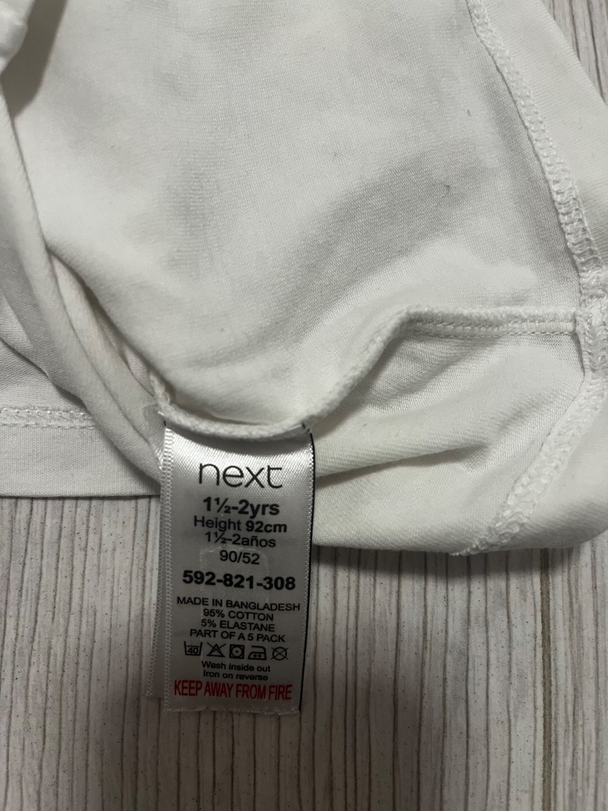 Predám 5 kusov bielych dievčenských tielok s čipkou značky Next, veľkosť 92 (1,5 - 2 roky)
