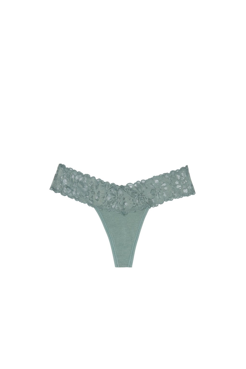 čipkové tango nohavičky, model Lace Waist Cotton Thong Panty, farba olivovo-šedá N8H. Kód 393016.