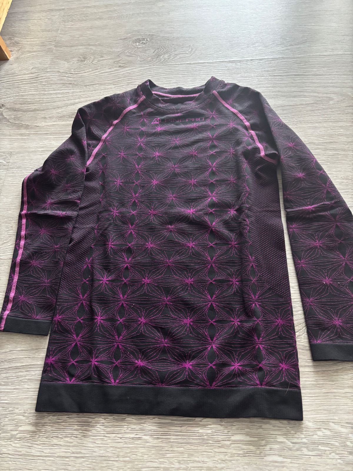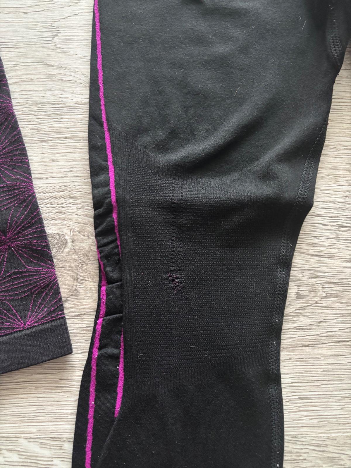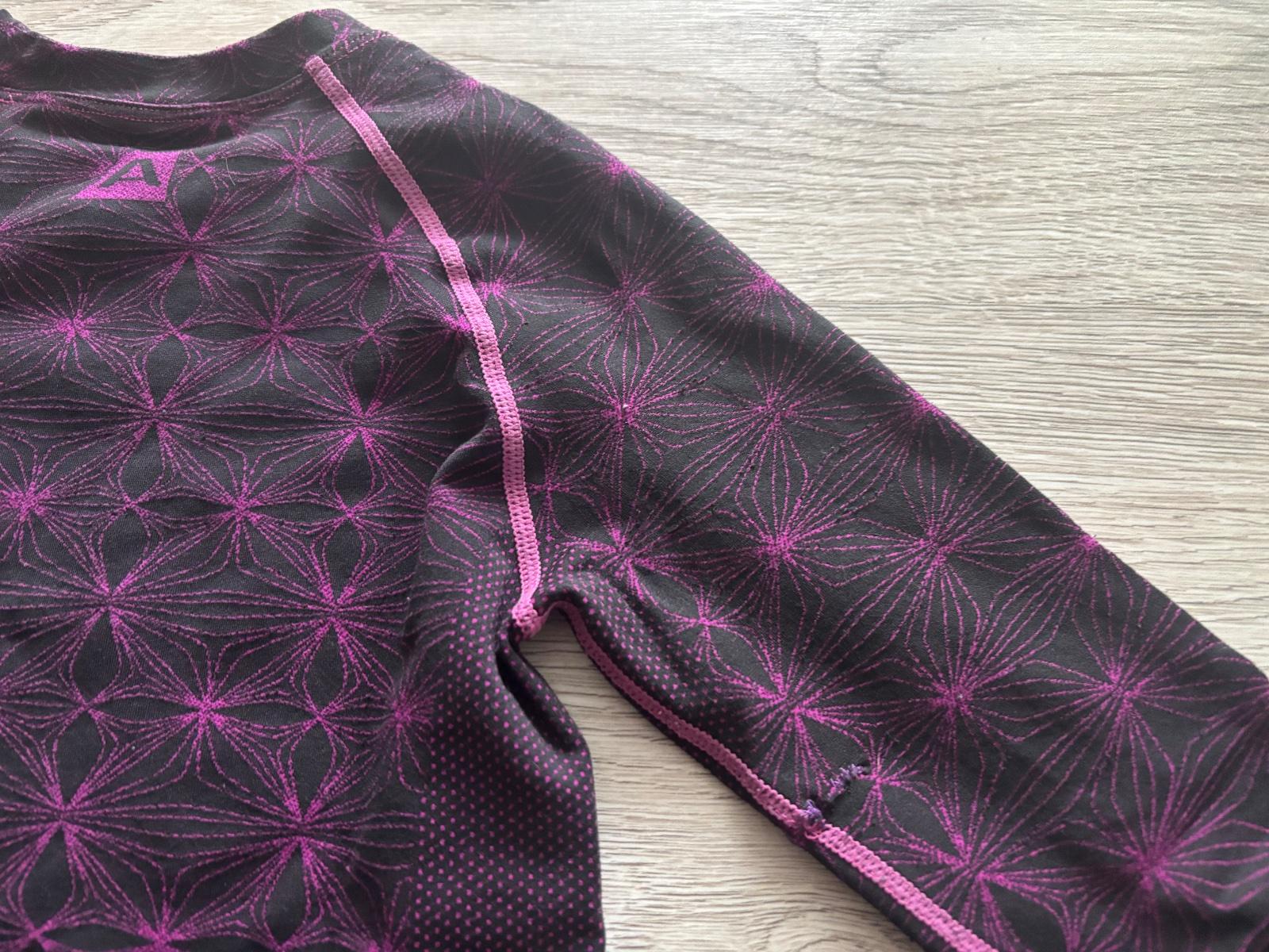 Zachovaly stav, na zadnej strane 1 rukavu zasite(vid foto) a na kolene rozparane (vid foto), farba cierna s fialovo-ruzovou, stale funkcne, cena preto znizena, 7 eur, kvalitna sportova znacka ALPINE PRO, detska velkost M, zodpoveda 130-143