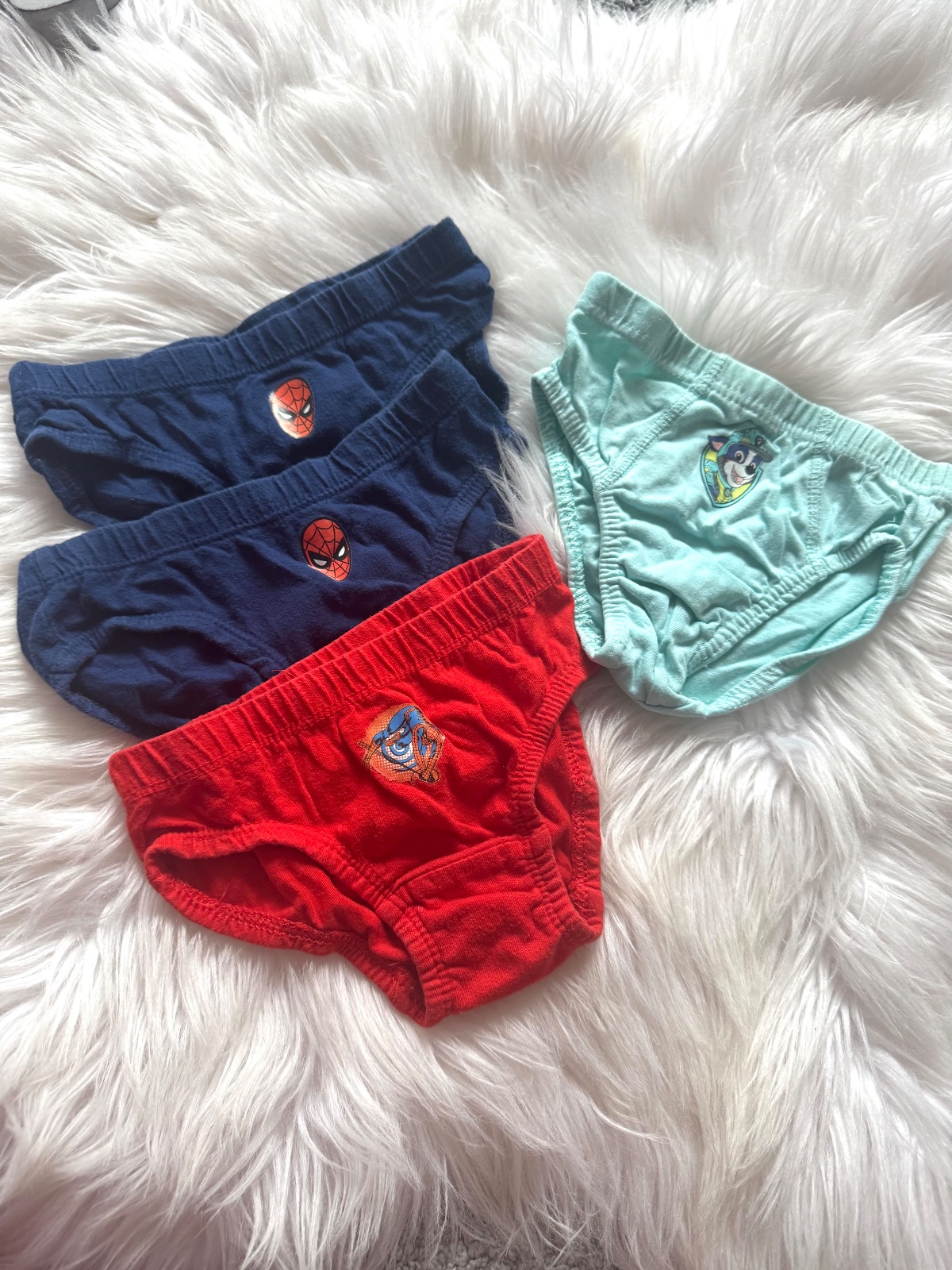 Slipy. Úplne nové, dostali sme, ale nevyužijeme a tak posúvame ďalej. Modré a biele slipy - veľkosť 110/116 (4 ks slipov v balíku) 2,5€