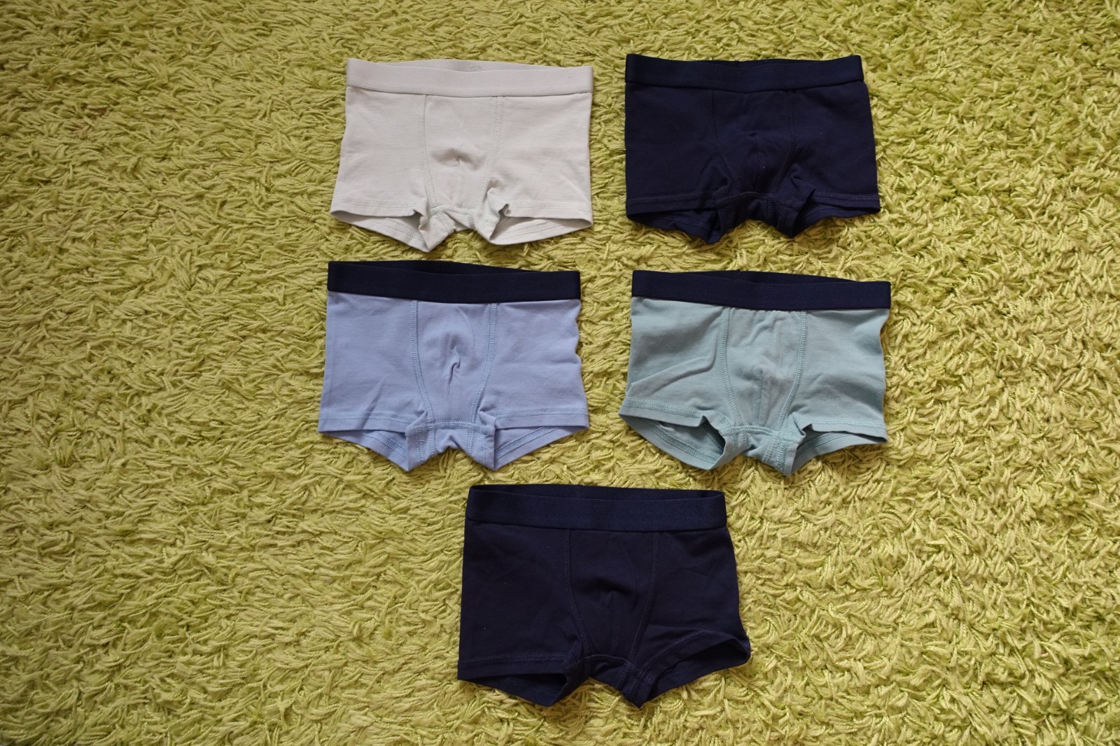 Predám 5 ks bavlnených jednofarebných boxeriek vo veľkosti 92 všetky značky H&M. Sú vo farbách svetlo zelená, tmavšie zelená, svetlo modrá a 2x tmavo modrá. Na 3 boxekrách som odstrihla štítok a 2 som nechala aj so štítkami. Mali sme ich 1x, takže sú top stav. Nemajú ani fľaky, ani diery, ani žmolky. Sú veľmi pekné. Pás je na gumu. Šírka pásu v kľude je 23 cm. Celková dĺžka je 19 cm, po rozkrok je 17 cm. (V10)