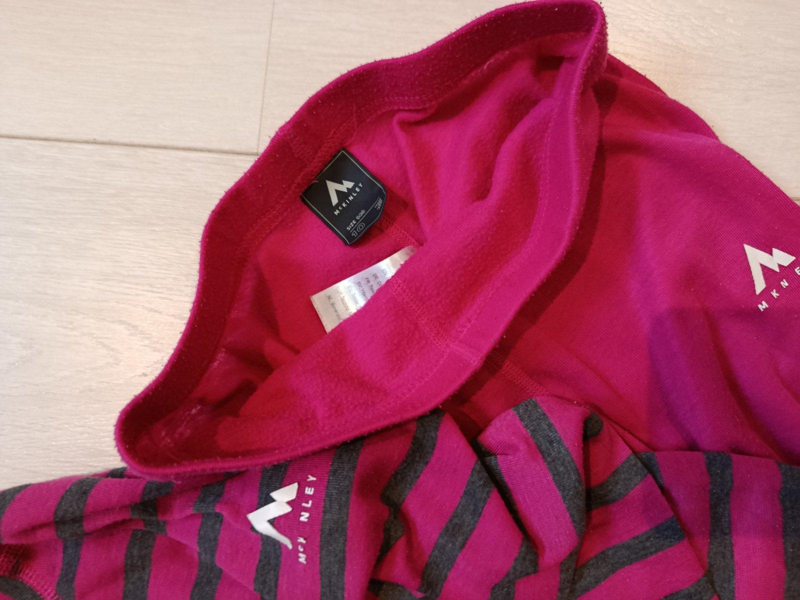 Nosene funkcne termotricko, bezne znamky nosenia a prania. Bez poskodeni. ( farba je syto ruzova, nie cyklamenova, ako mi ju foti) Rozmery: vel. 134/140 dlzka 50cm sirka 32cm rukav merany od krku ...