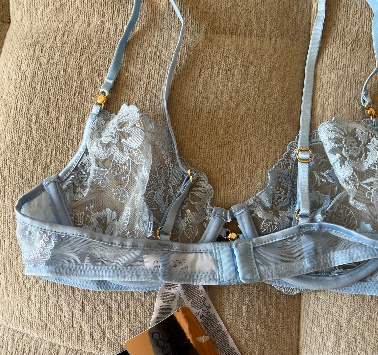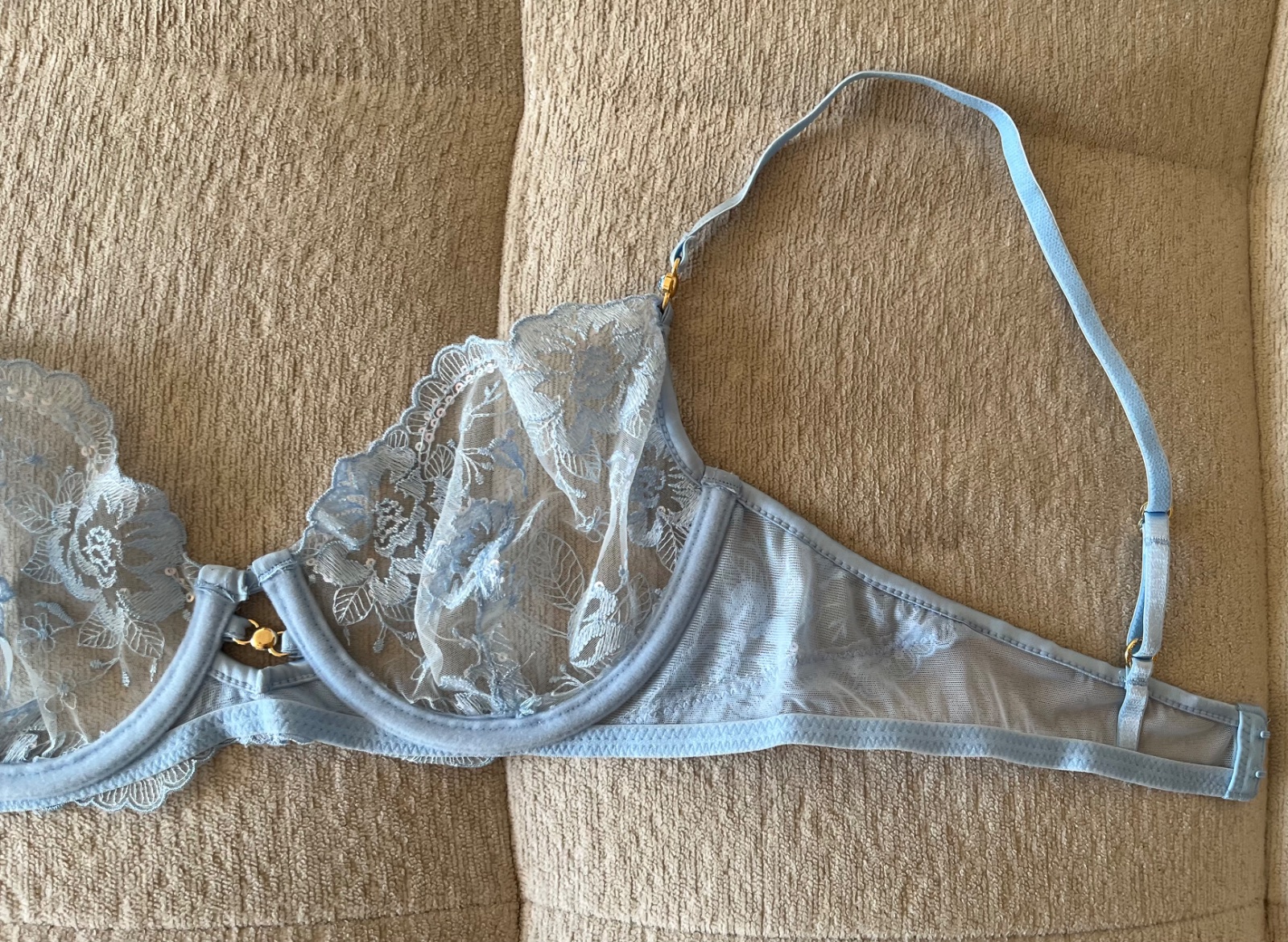 - nová bledomodrá mäkká čipkovaná podprsenka