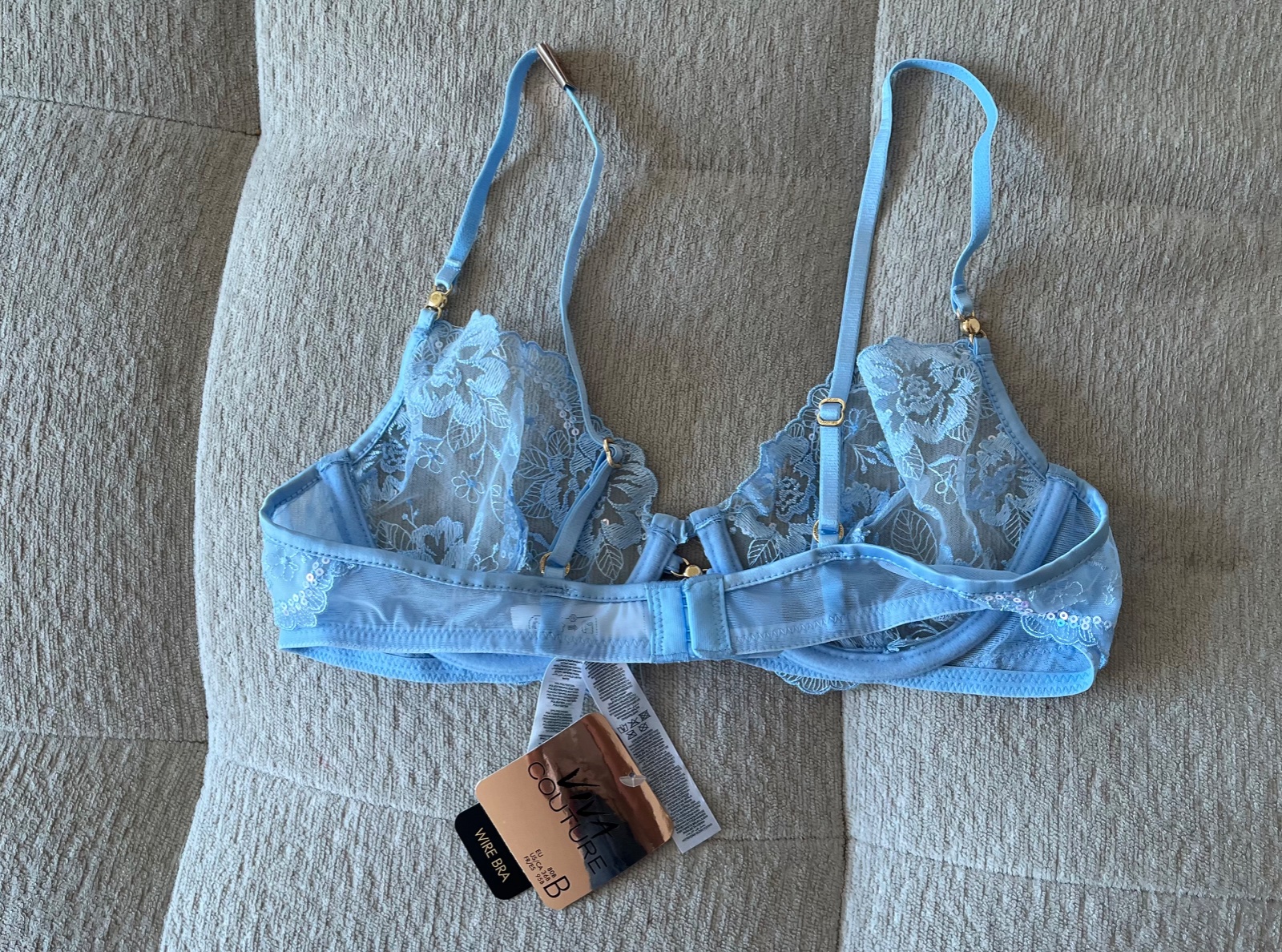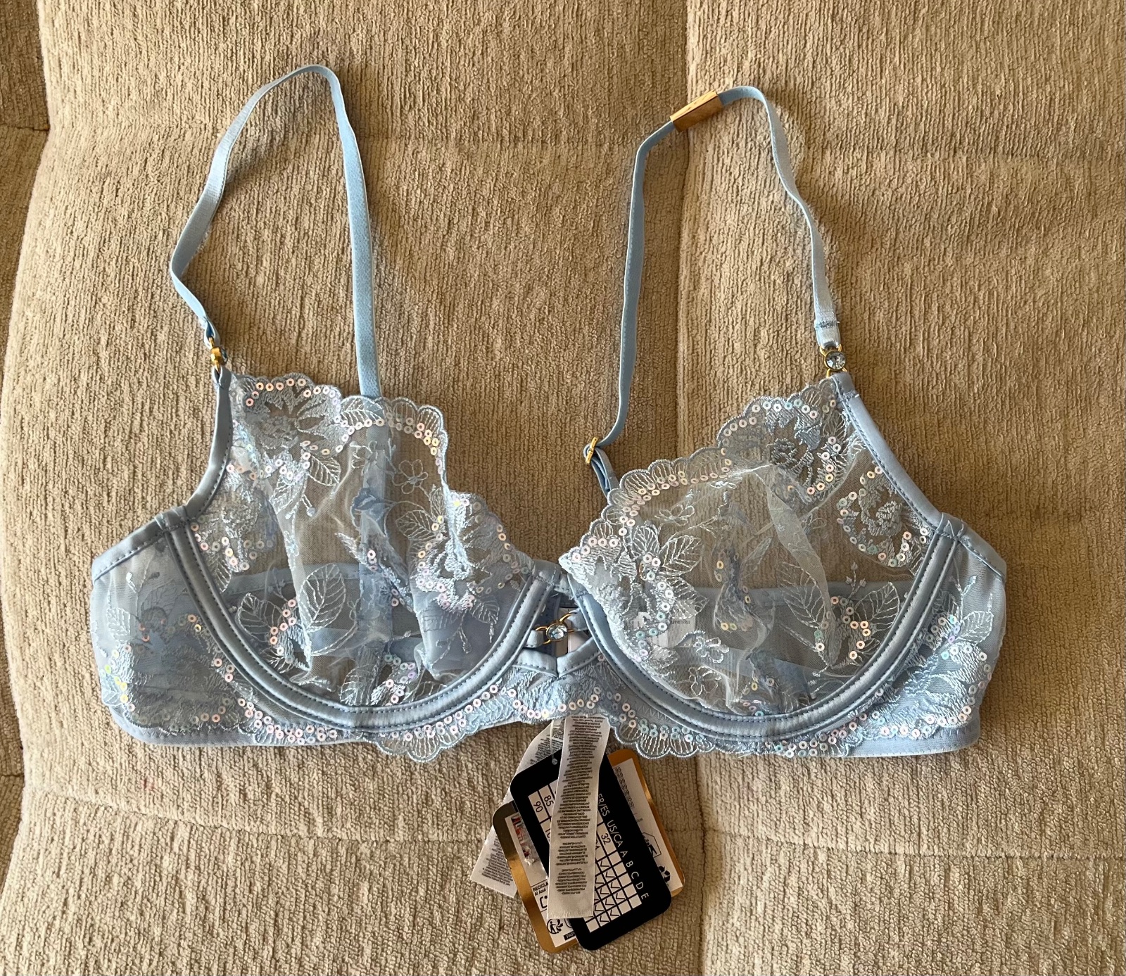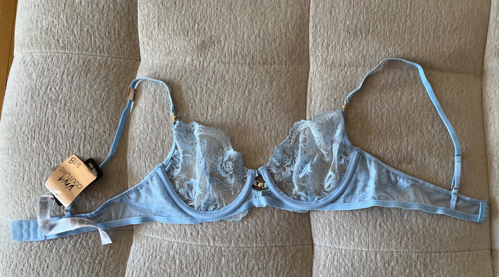 Nová bledomodrá čipkovaná mäkká podprsenka, 80 B