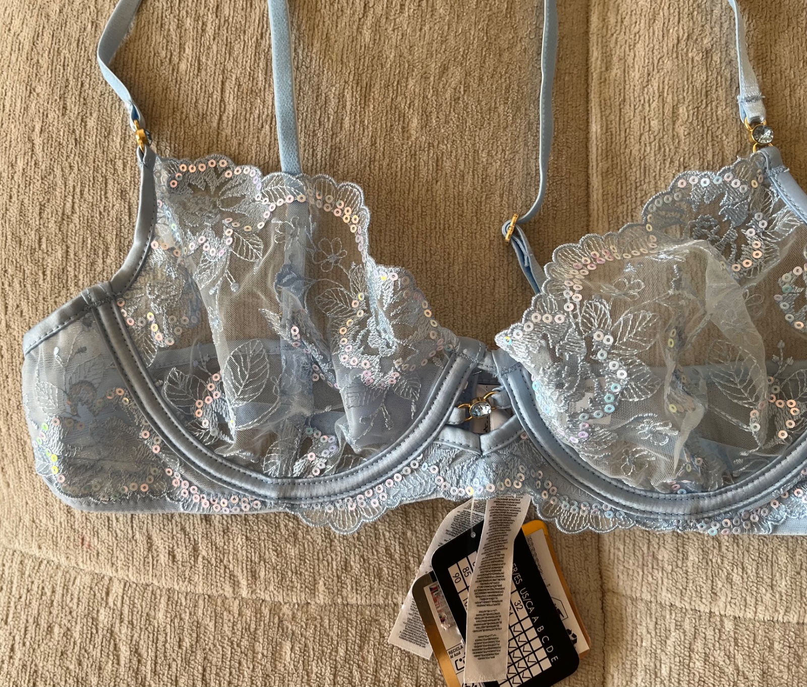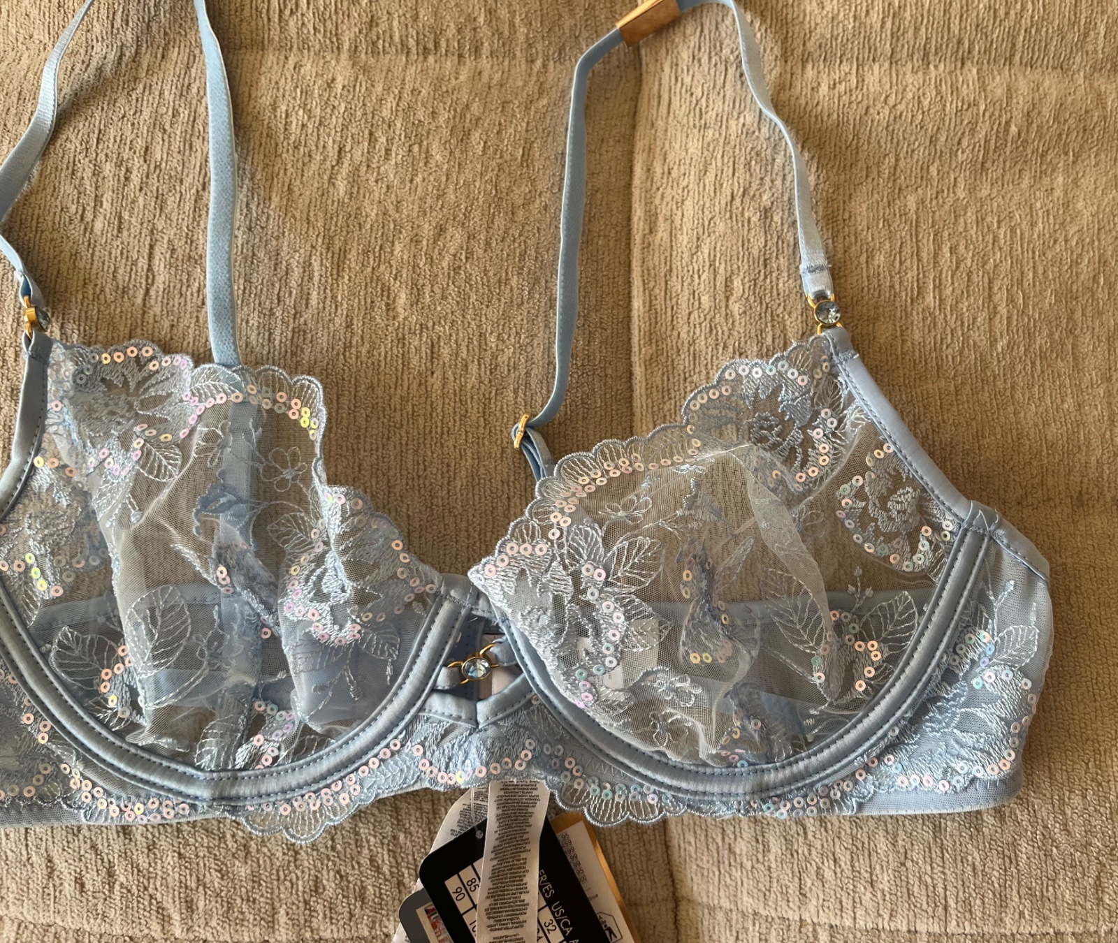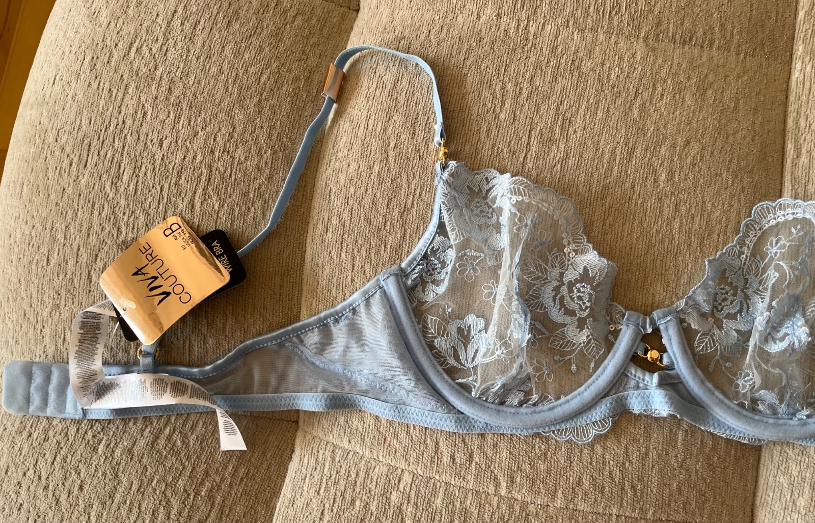 Nová bledomodrá čipkovaná mäkká podprsenka, 80 B