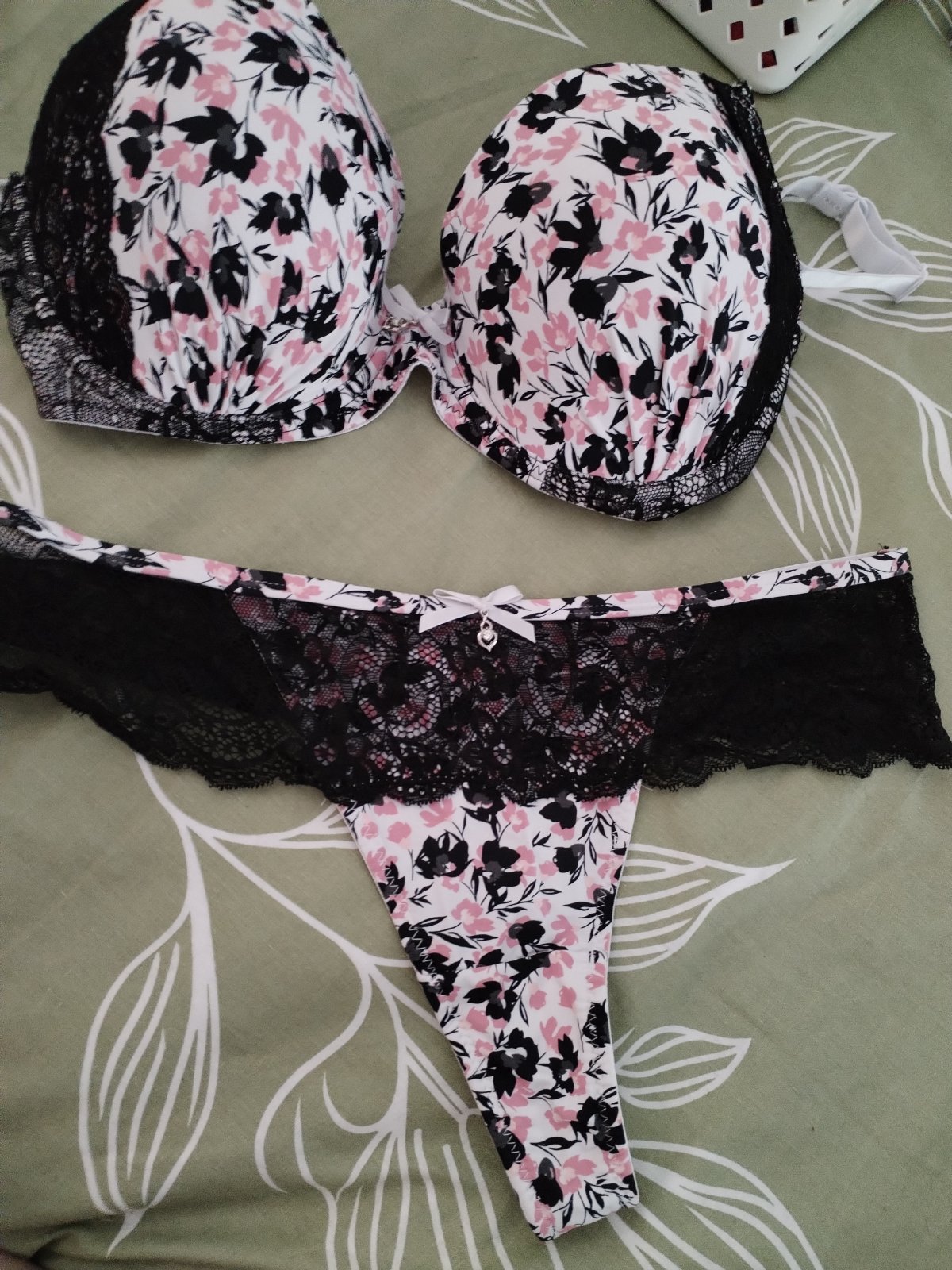 Podprsenka možno 2x oblečená, tanga nohavičky vôbec, ak by niekomu poslúžili, set cena 3 eura plus posta
