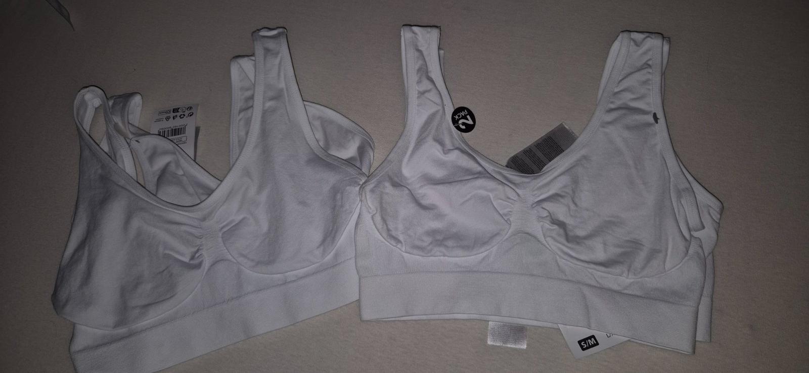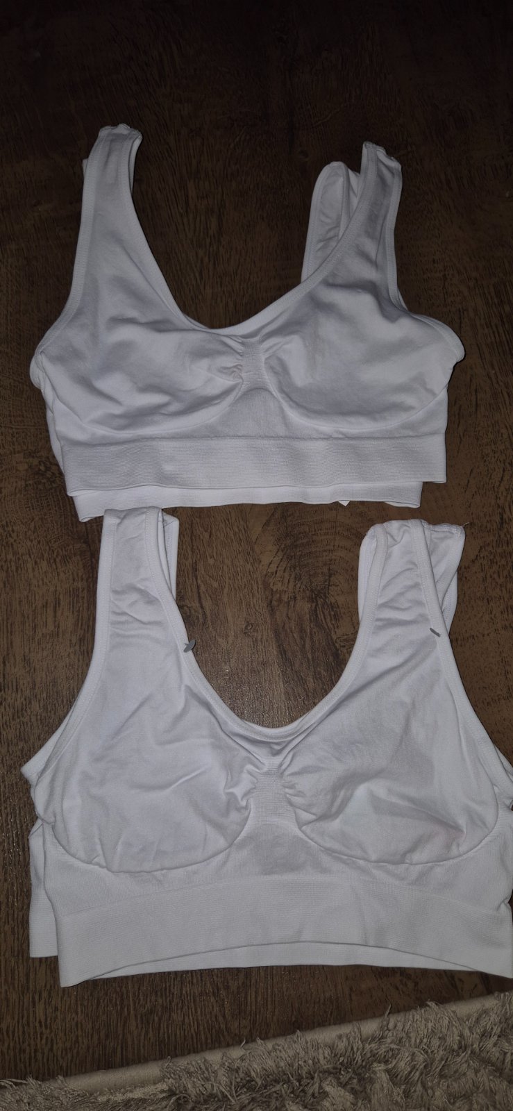 Biela lambada - zavinovacia podprsenka. Pohodlná, pružná, netlačí, ale podrží čo má. Veľkosť na 34/36/38. (18/17)