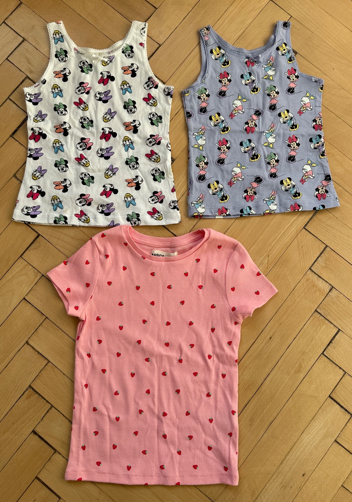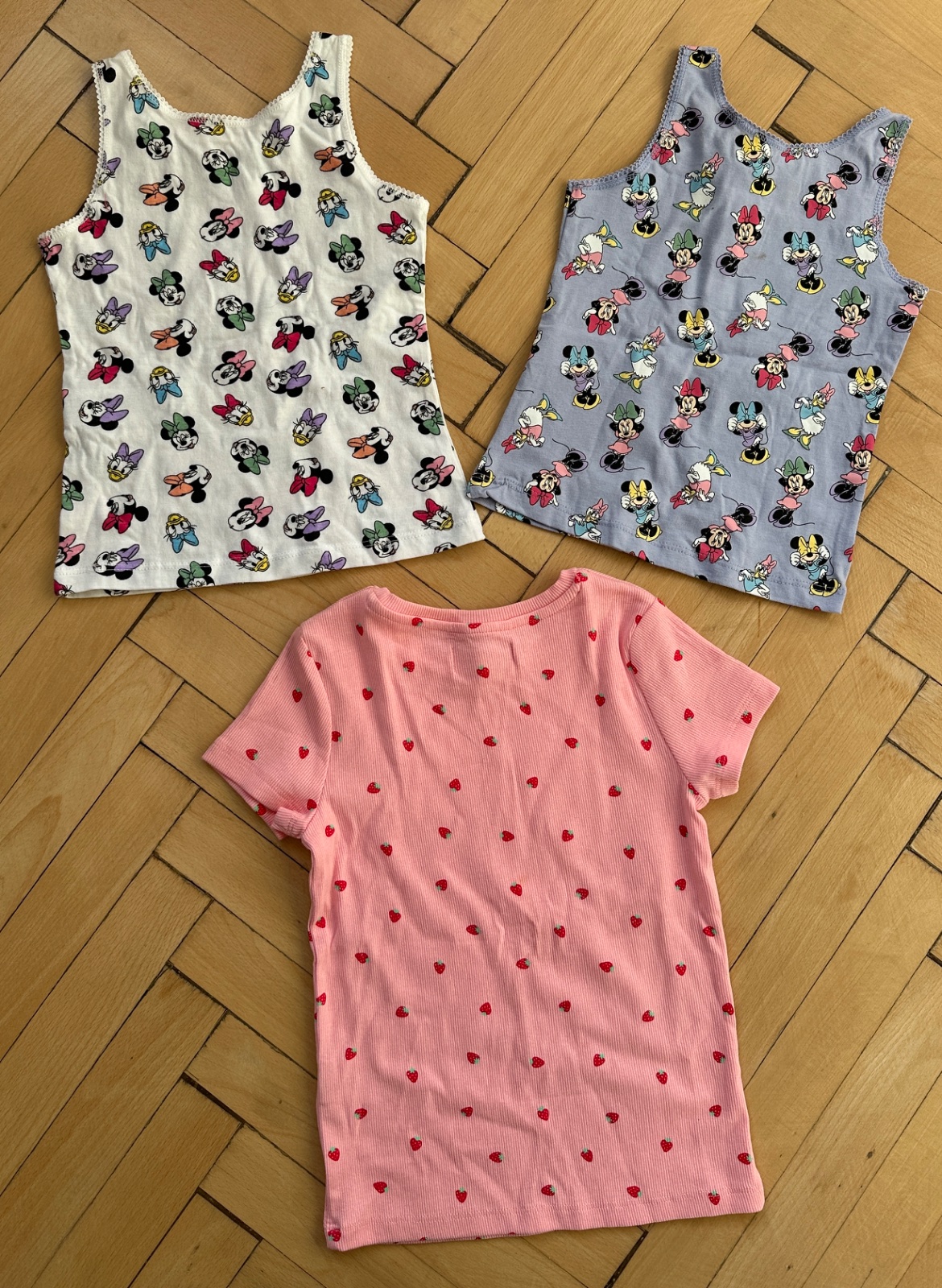 Predám 2 tielka velkost EU104 pre dievcatko 3-4 ročné a k tomu pribalim tricko na foto zadarmo, ktore je velkost na 4-5rockov.Vsetko ako nove.