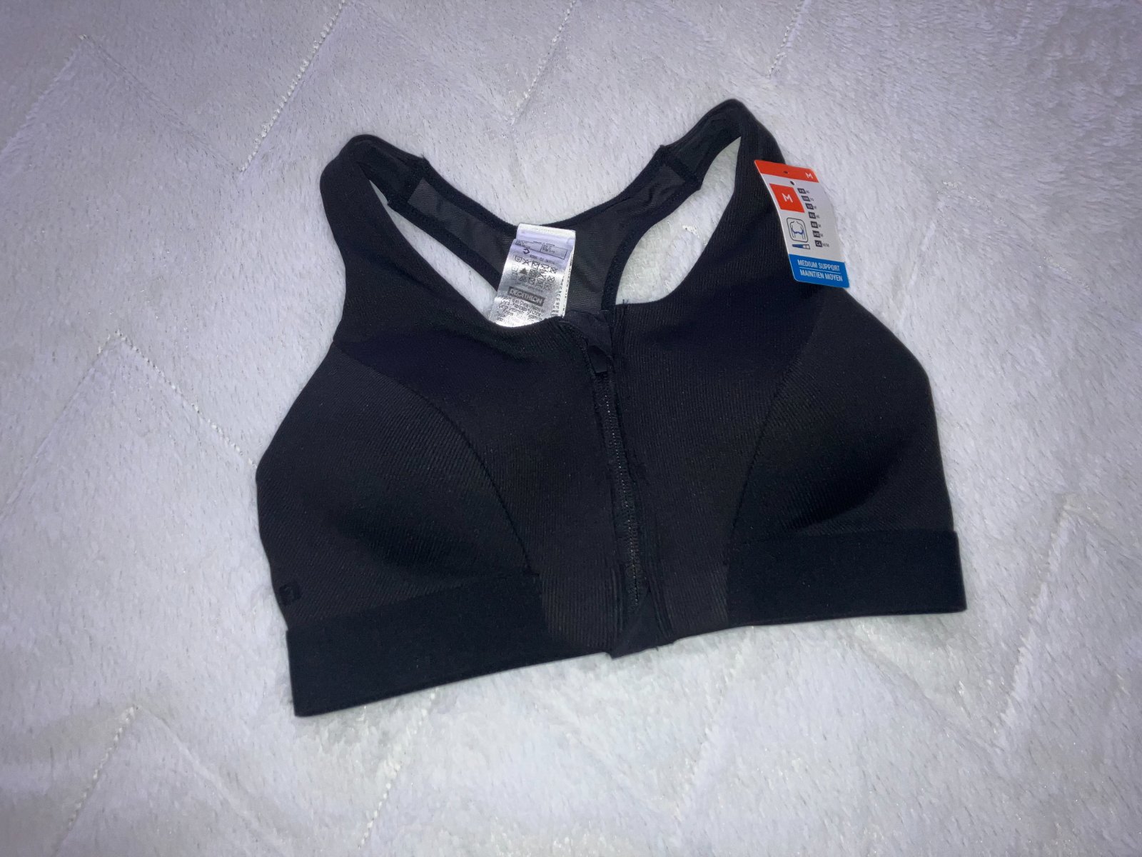 Podprsenka vrúbkovaná na zips s miernym spevnením dymová čierna