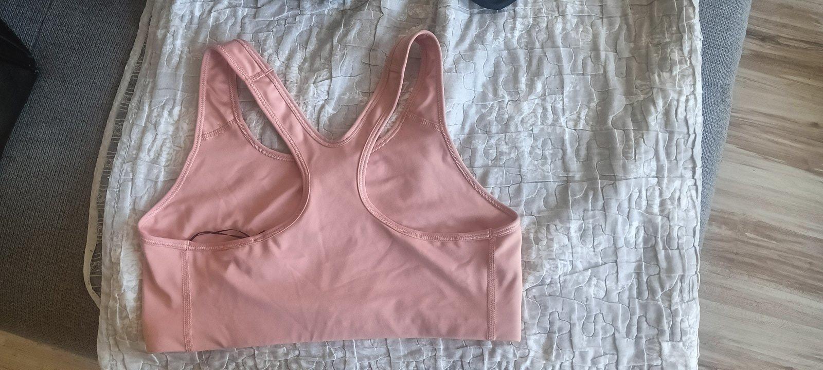 Nosené športové podprsenky bez vystužené Nike DRI fit. Veľkostne sedia na XL, na spodnej gumičke mierne zazltnute Cena spolu