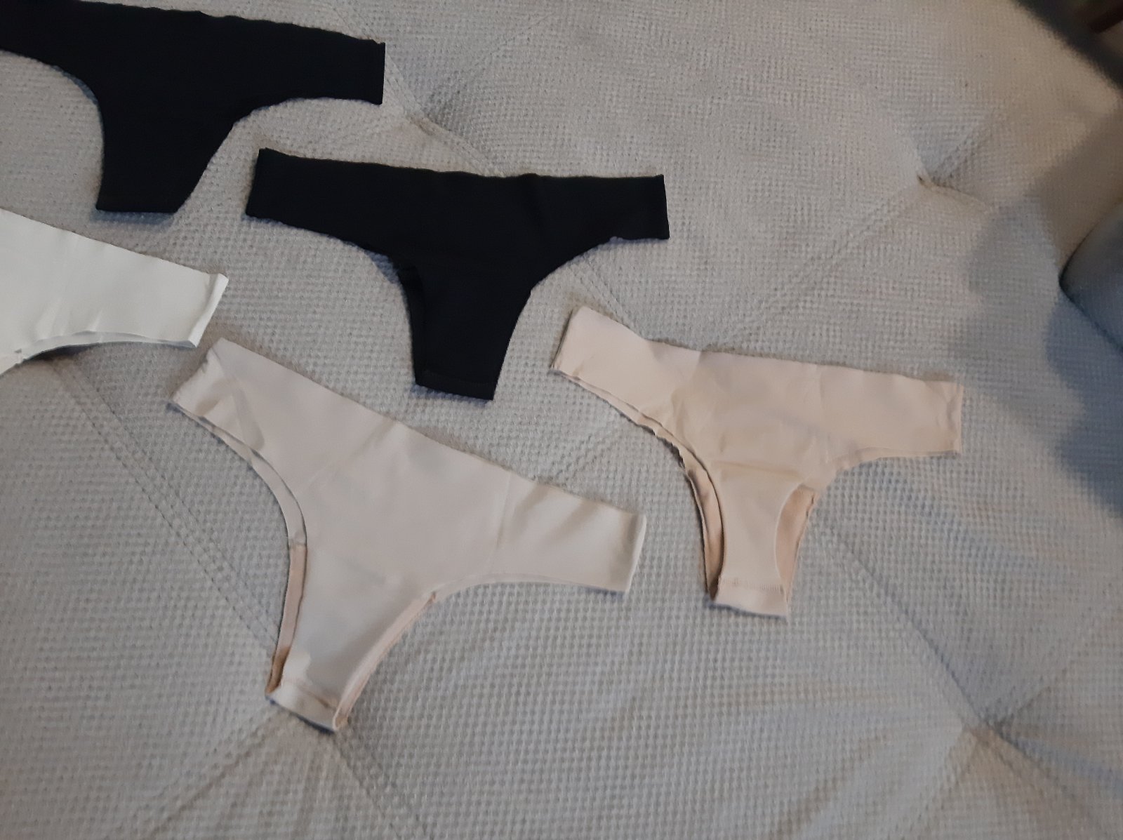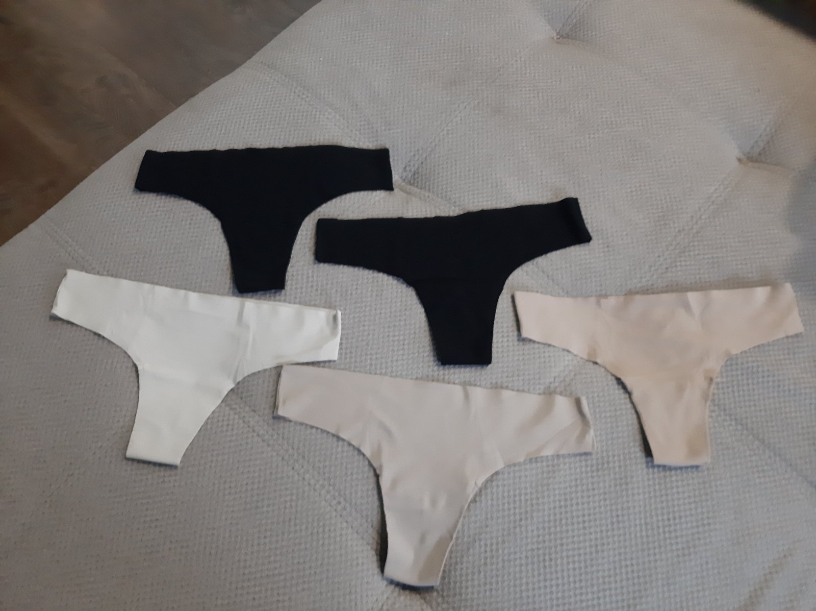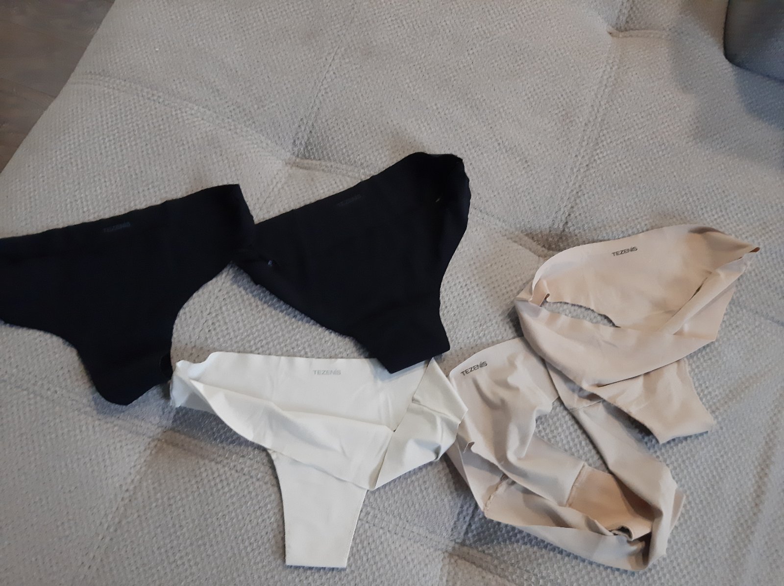 Nevhodny darcek...Nenosim tento model, velkostne XS-S.Len oprane, nenosene vobec.Elasticke, prisposobia sa, bezsvove, nizke, bedrove,nikde netlacia.Sirka vklude 29 cm, povoli dost aj cez 44 cm.Sed 18-19 cm,Cena za vsetky spolu je 18 eur s postou.