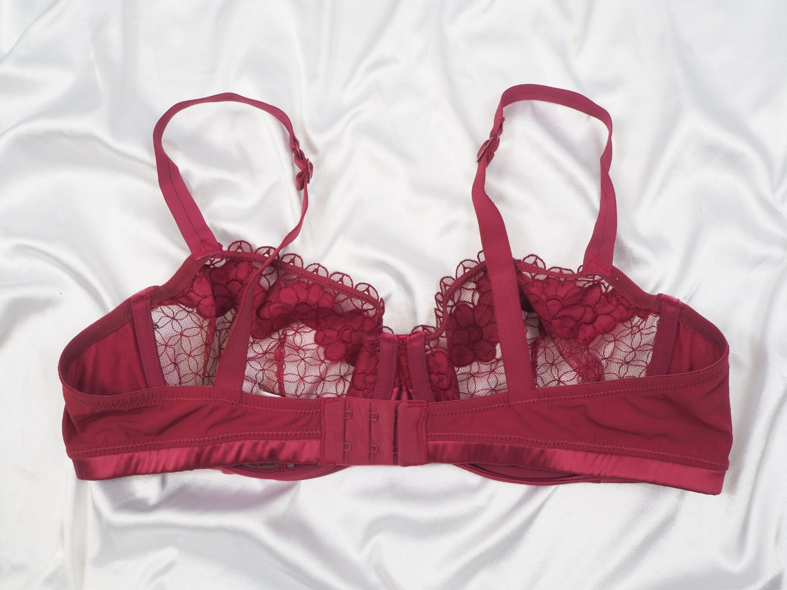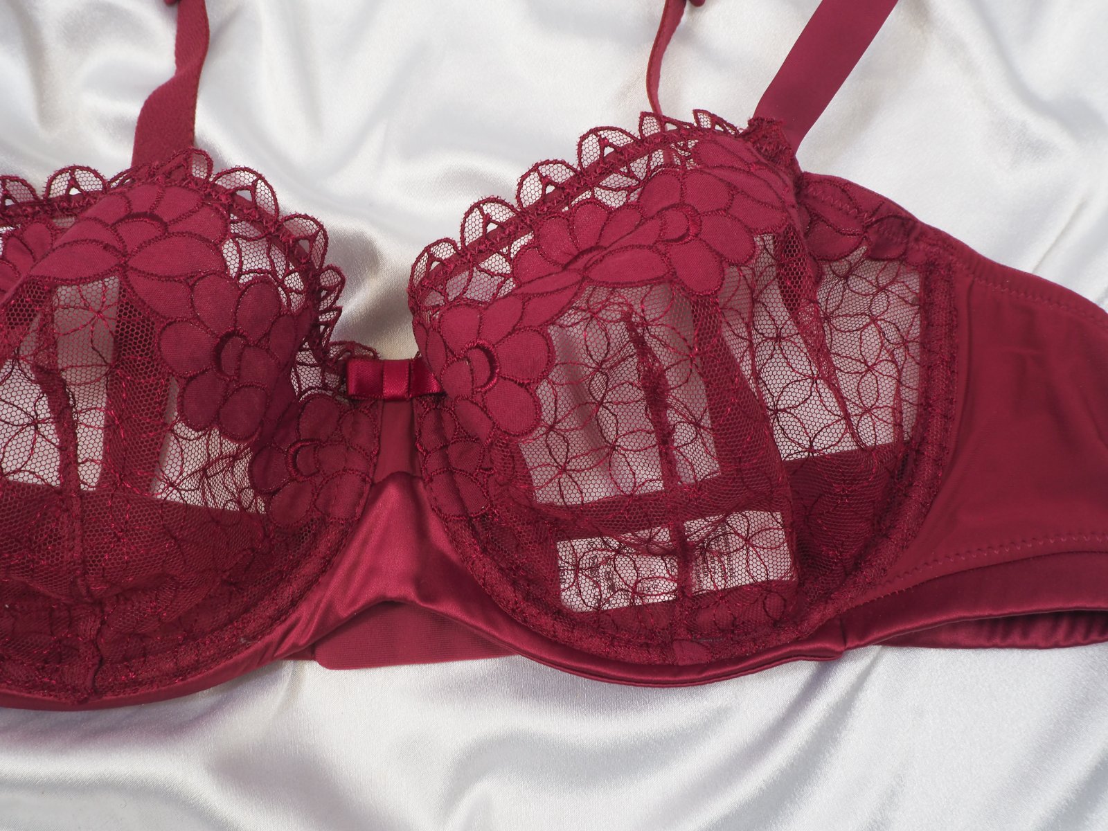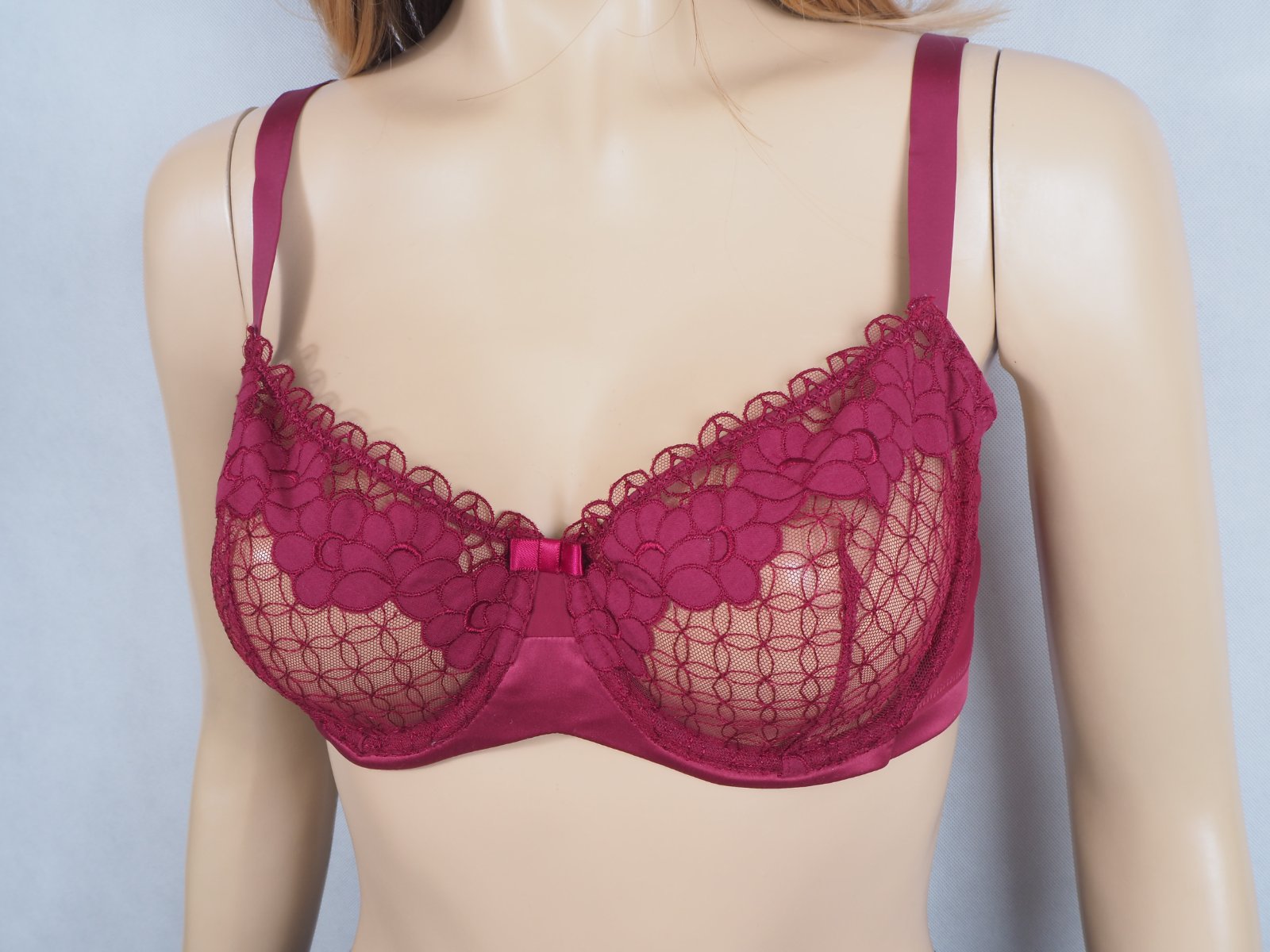 Kvalitná čipkovaná bordová podprsenka, s kosticami, zloženie na detailnej fotke, nová bez visačky.